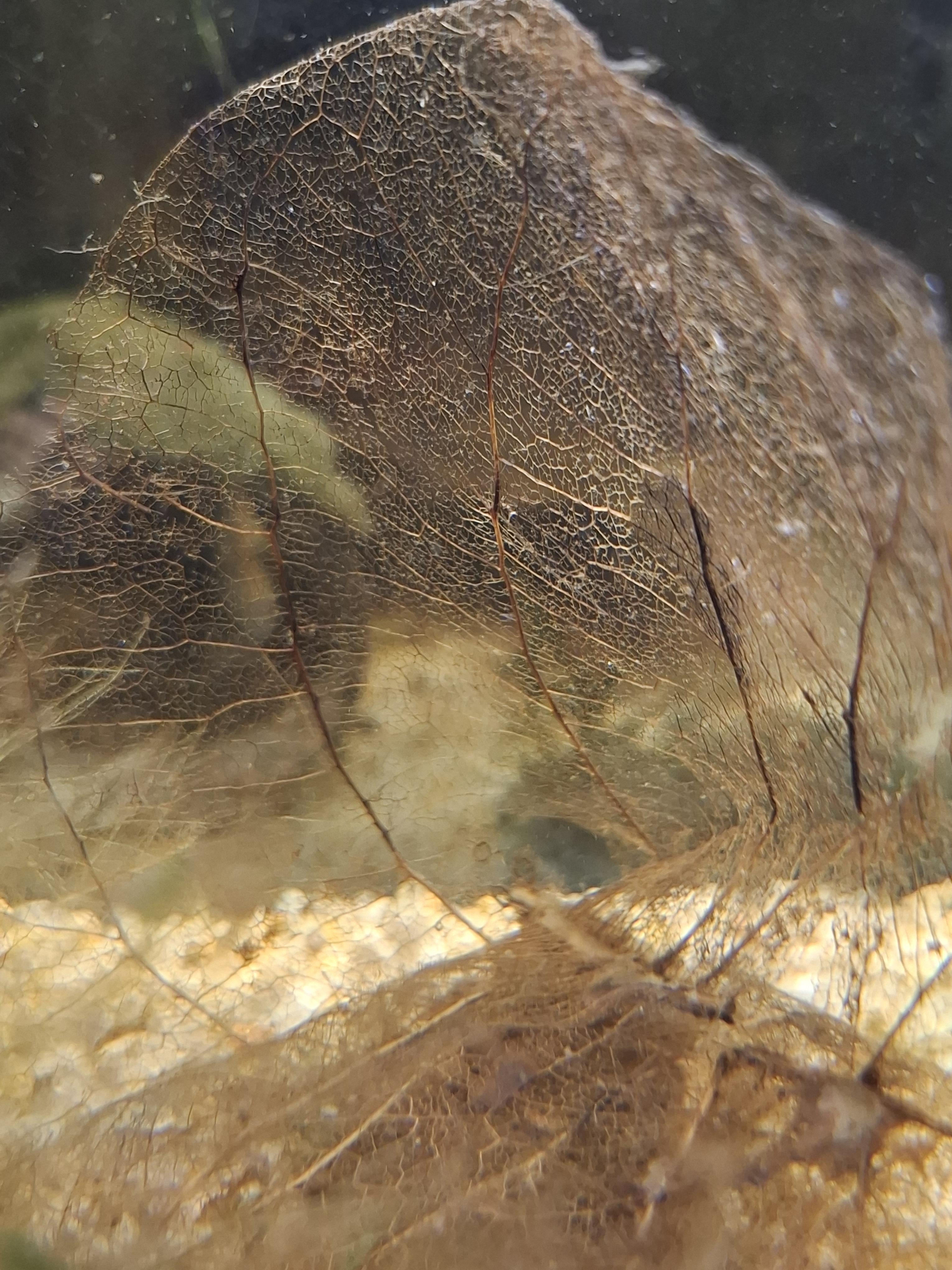 I'm always fascinated at how well shrimps can chow down the entire catappa leaf, leaving behind just the veins. It's like leaving behind a beautiful art piece.
