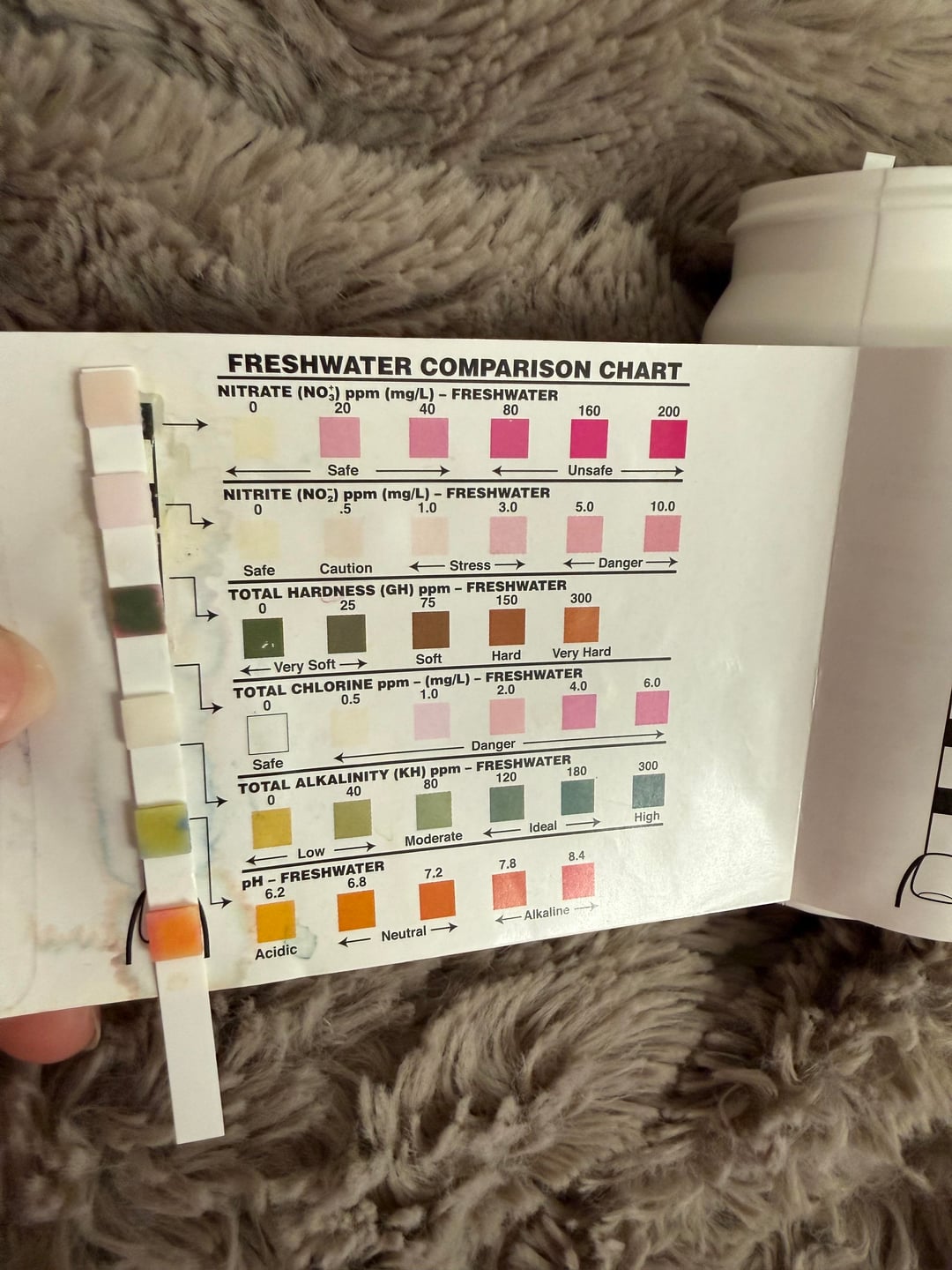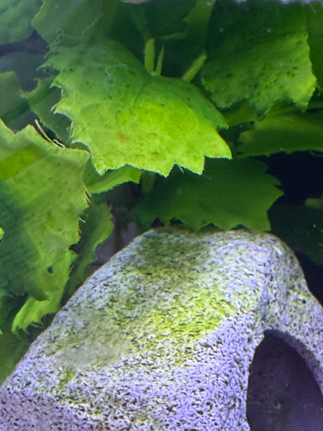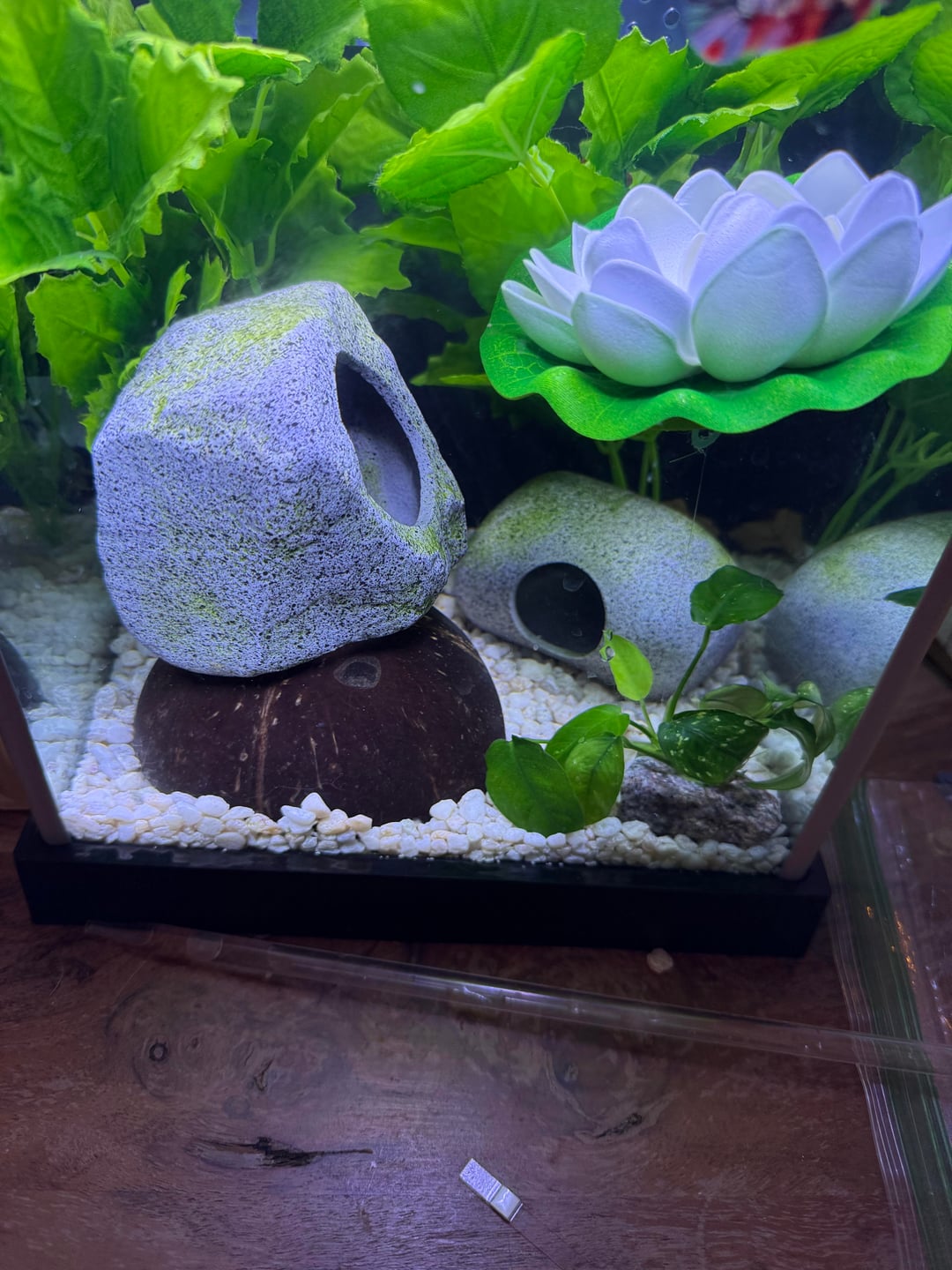 Question i am new to this so pls dont be mad lol got this betta as a white elephant gift and there is green and black stuff growing on the silk plants and decl and on the tips it shows stressed??! How do i fix thag and the nitrate too sorry for the bad pics! Tank size is 2.5 gal thats what she came with with a heater etc