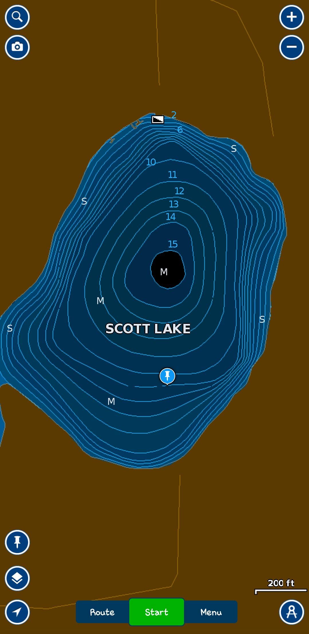 1. Guessing crappie? If so, I’d check the deepest part and see if you can find them suspended. Maybe drill holes every ~100 ft from your pin to the center and look around.