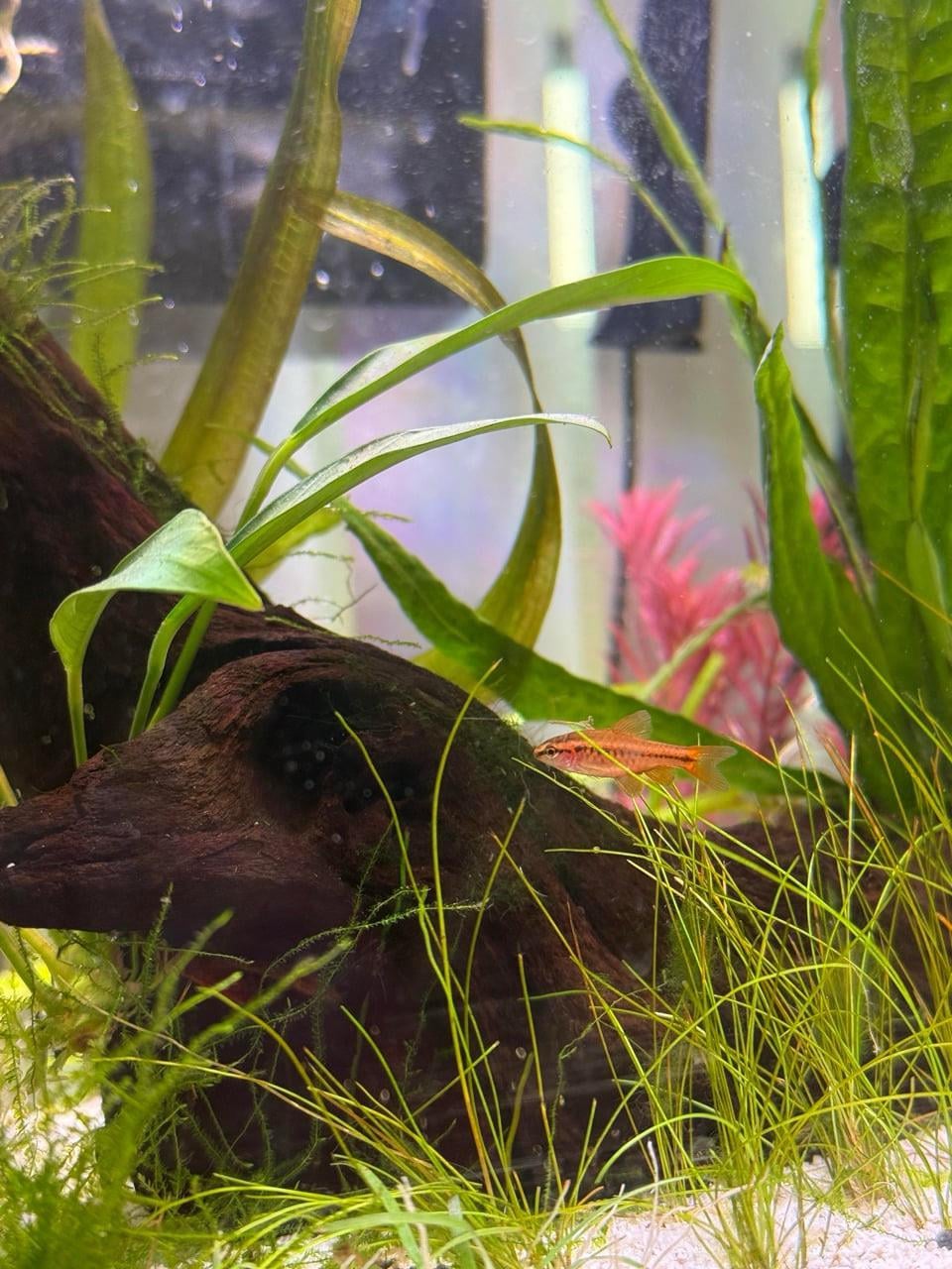 Well I did that and saw this little dude swimming around after the water cleared. Ive since discovered it’s a juvie cherry barb which should be in schools of at least 6 and need a lot more space.