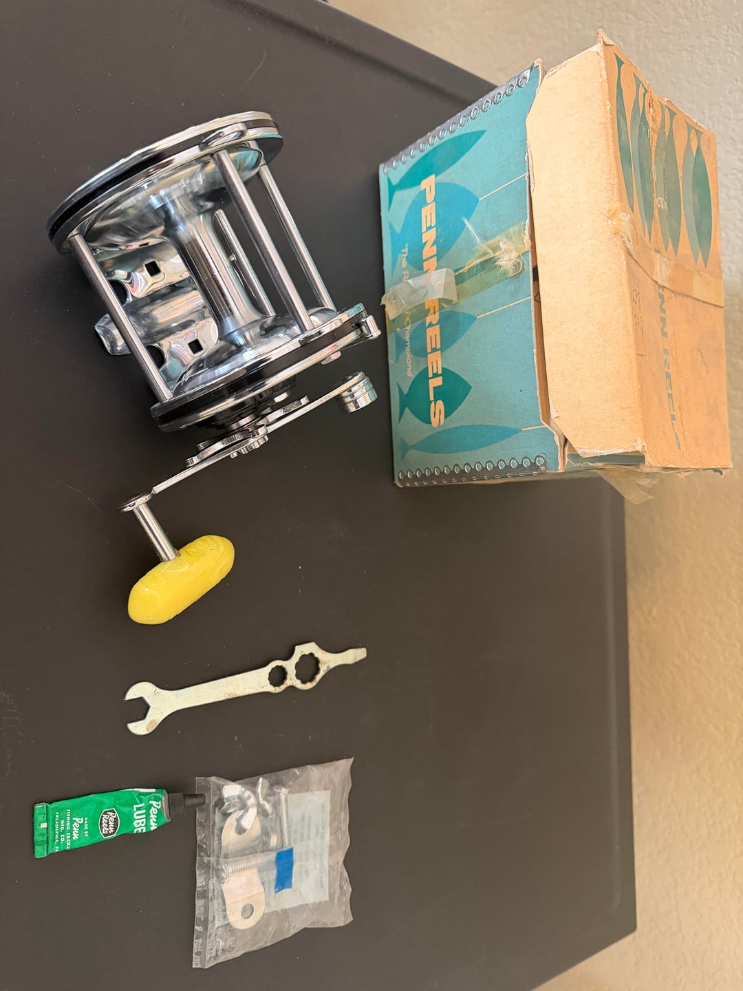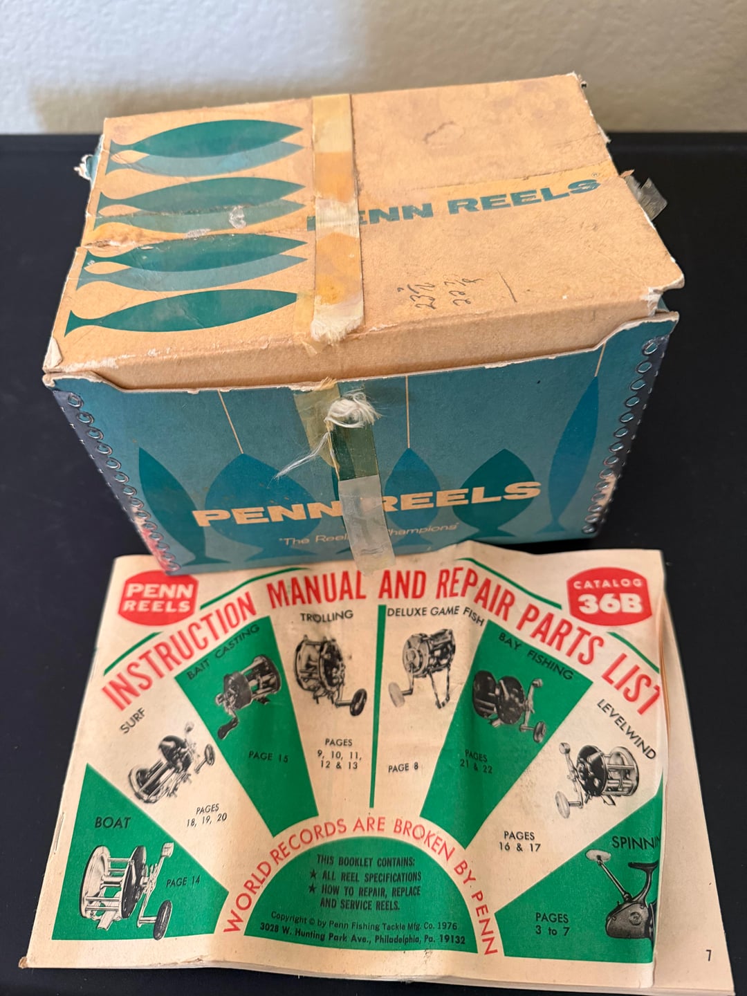 I’ve got a 1976 Penn 4/0 reel with original box, original manual, lube, parts bag unopened, for sale. This apparently (grandad no longer alive, so based on no obvious wear and tear) unused half-century old beauty (see pictures) should be on display or put to good use by someone that appreciates vintage quality. I’m a fly fisherman mainly, so it’s not a reel I’ll put through the paces – but someone should! Based on pricing it out I gather in this condition it’s worth some $200 not including shipping. Taking offers.