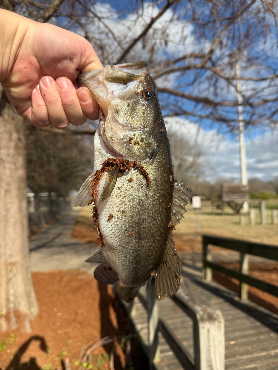 I was dragging a senko through all this pine needle crap and landed this fella. 80 degrees at about 1pm