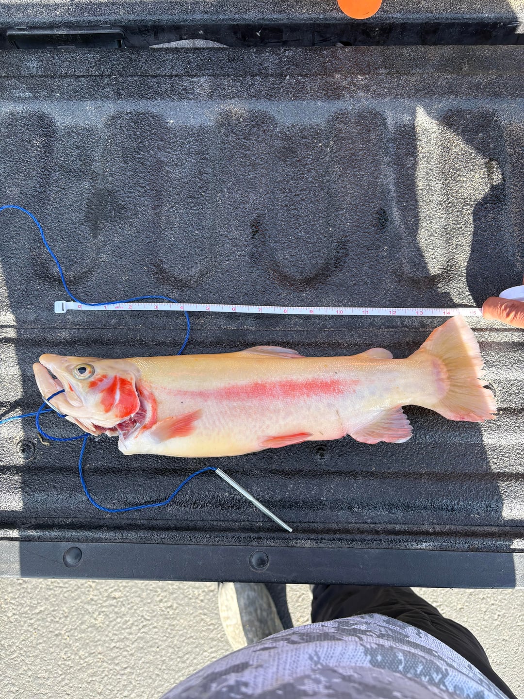 Nice stocker from yesterday. On a trout magnet. First lightning trout and pb rainbow. Posted by jose_ole