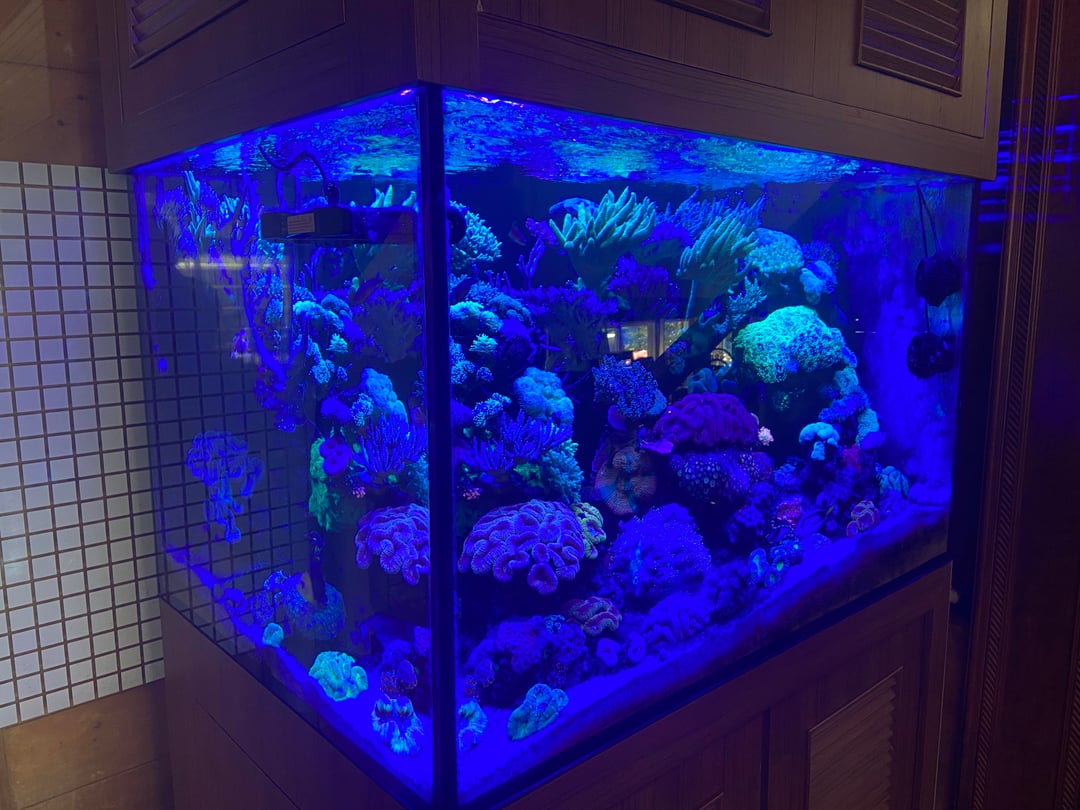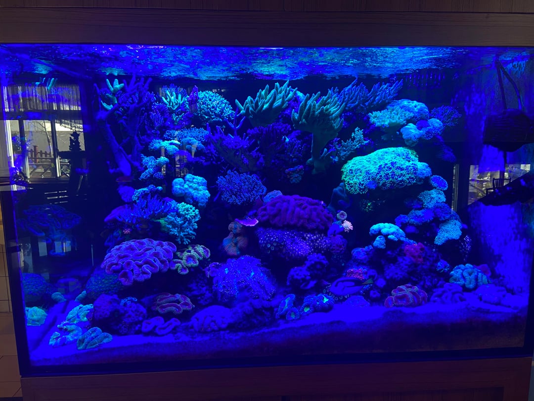 The phone pictures dont do it justice but its all live corals and looks like something youll see in the great barrier reef lol it even has a small giant clam. Im also wondering how long it would take to grow a coral tank like this