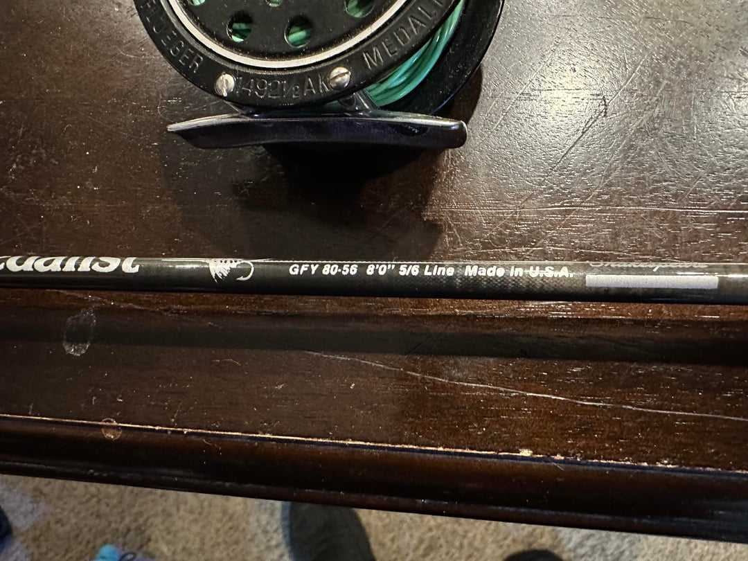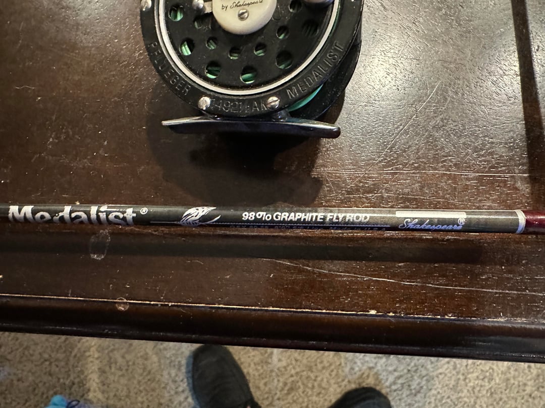 He popped into the garage and came back with this Shakespeare rod and reel combo.