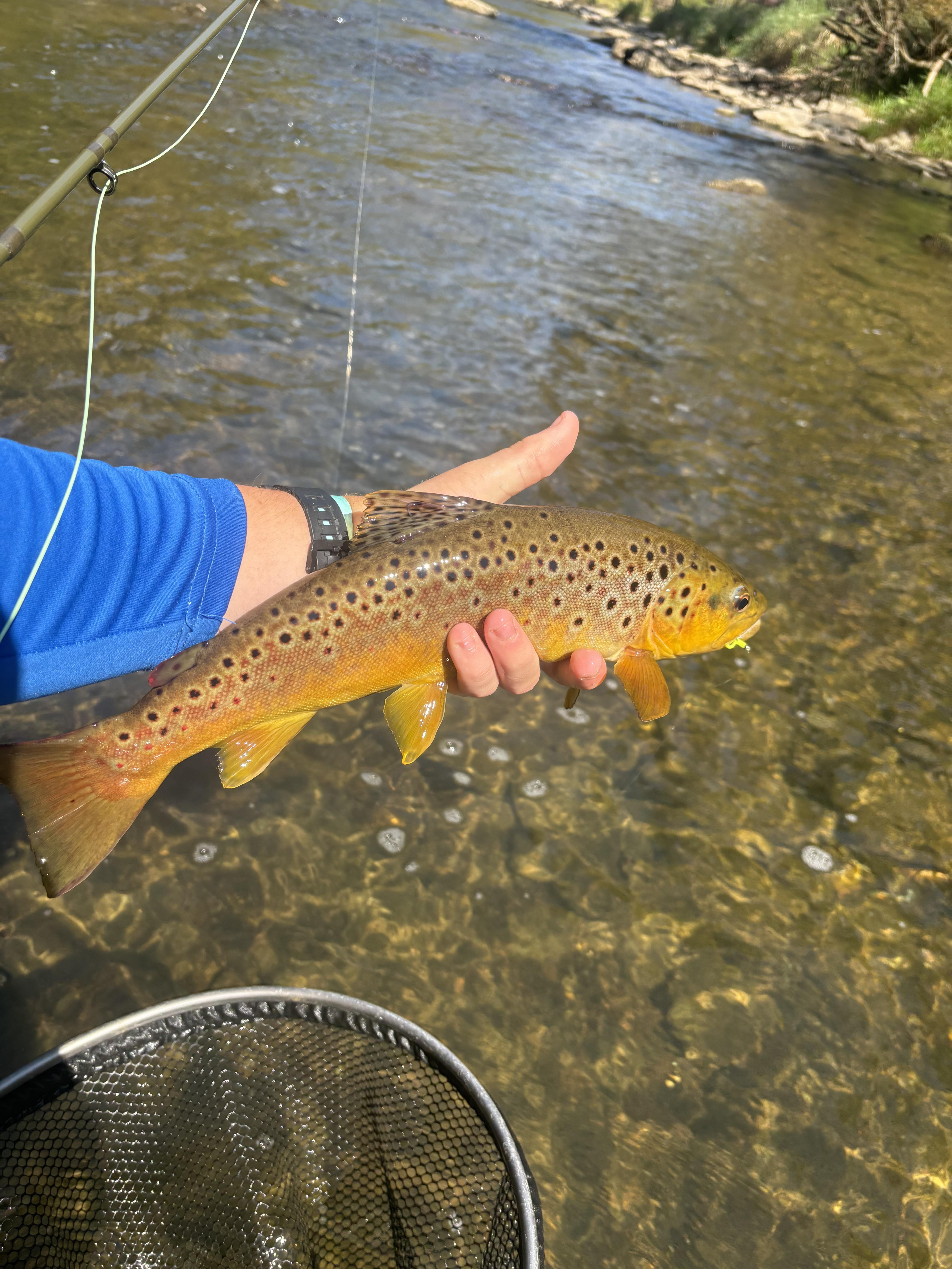 I’ll start. I haven’t been fly fishing for all that long, less than 2 years, but have fallen in love with it this year completely. I had been wanting to take a trip out to some more wild waters than what i had around me in south western pa to central pa. I lended up taking a trip out there in an unrelated trip and got to fish penns creek for the first time and i hooked into my first true wild trout and it is something i will never forget. I was fishing a dry dropper with a green weenie under either a bwo or stone fly dry fly, fishing a little pocket when this beautiful 15 inch wild brown ate! Got him in the net measured and released safely but it was the best feeling ever!
