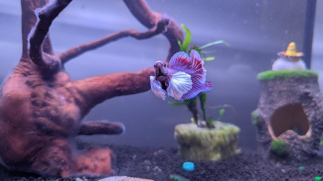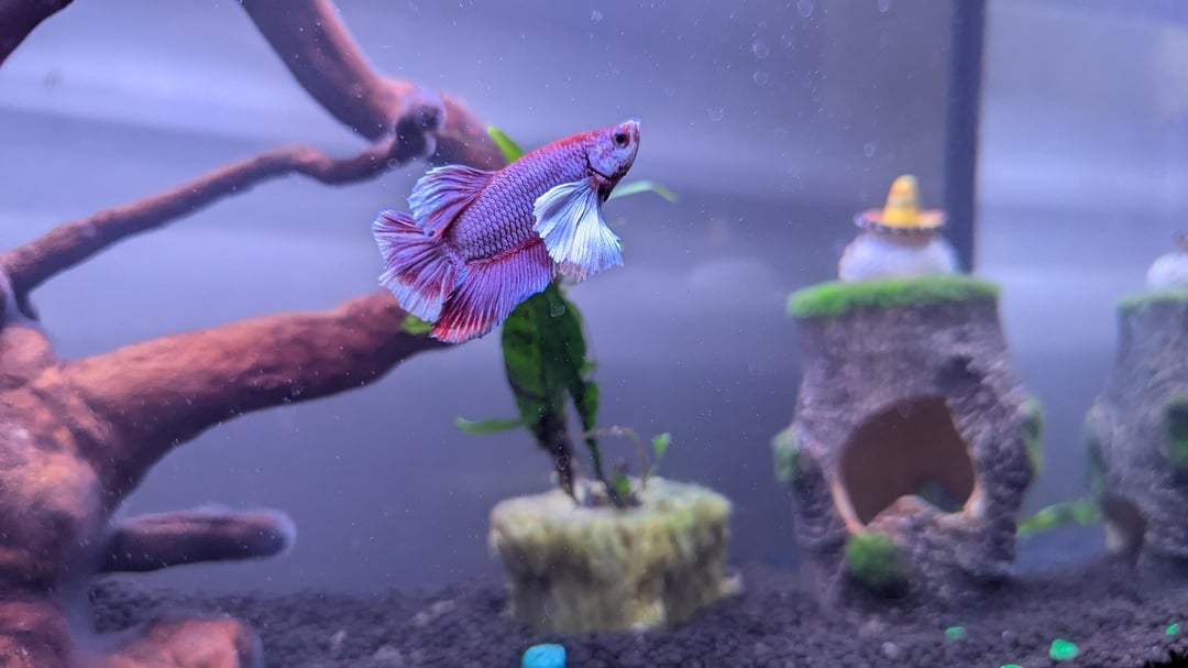 Hi there, I can't tell if my fish is a male or female even after trying to Google the differences to look for. I'm pretty sure it's a rare crimson dumbo betta. What do you guys think? (Still working on getting all the plants and such for my aquarium setup, apologies) 😅