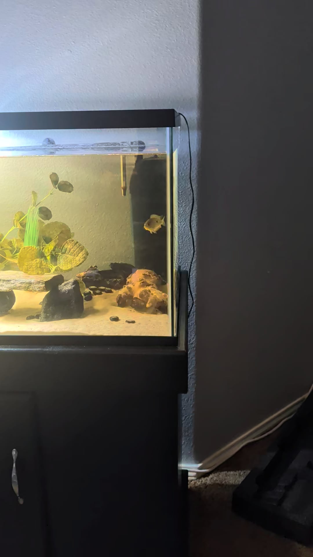 I bought a breeding pair of rainbow cichlids that were already swimming with each other when I bought them a few days ago and we're doing fine when I introduced them to the tank. But now the male and the female have separated from each other and the female is swimming at the glass should I be worried?
