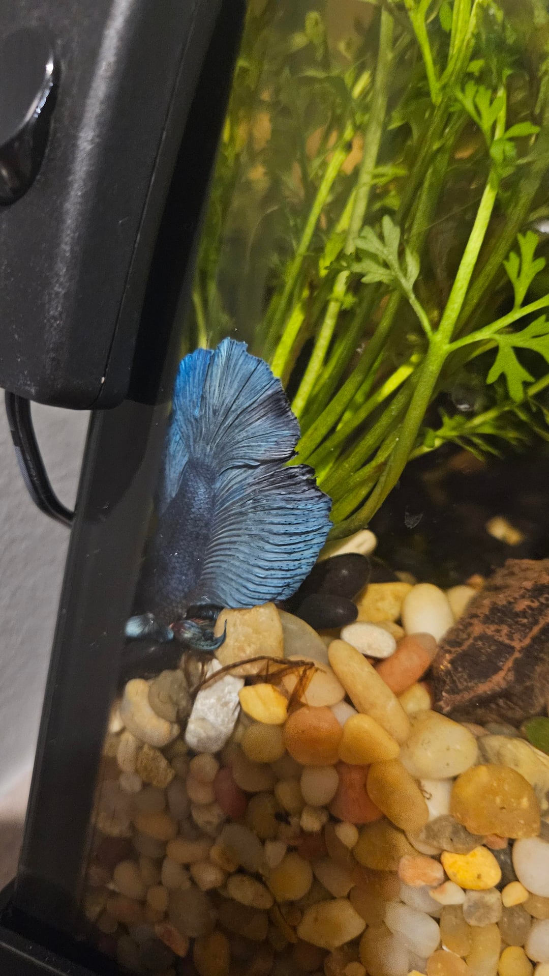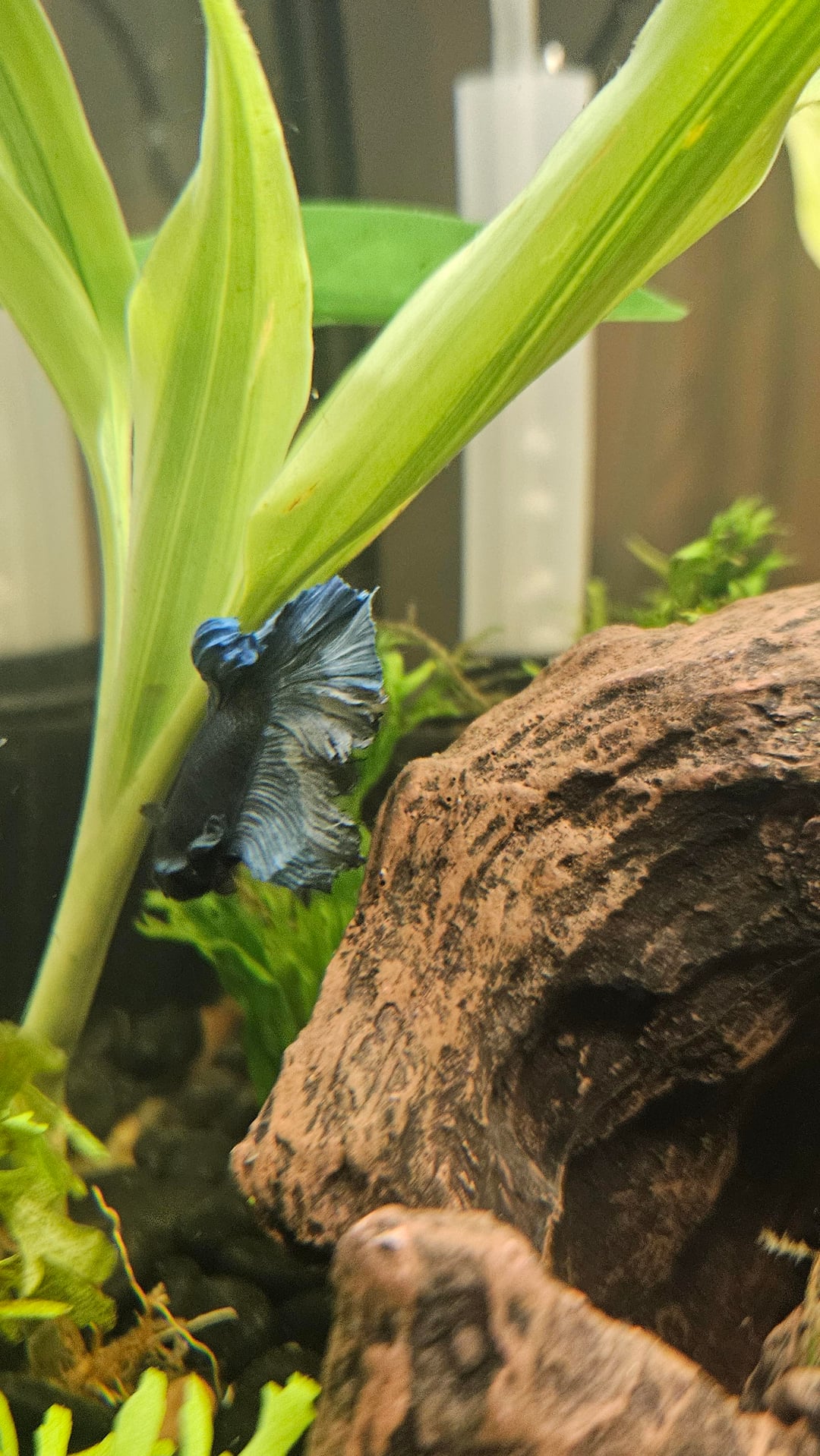 I took the first picture last night because my mom didn't believe me when I was talking about how he sleeps. And woke up today and he's suddenly missing a chunk of his tail. Should I add almond leaves to his tank? I can't figure out what he was caught on.