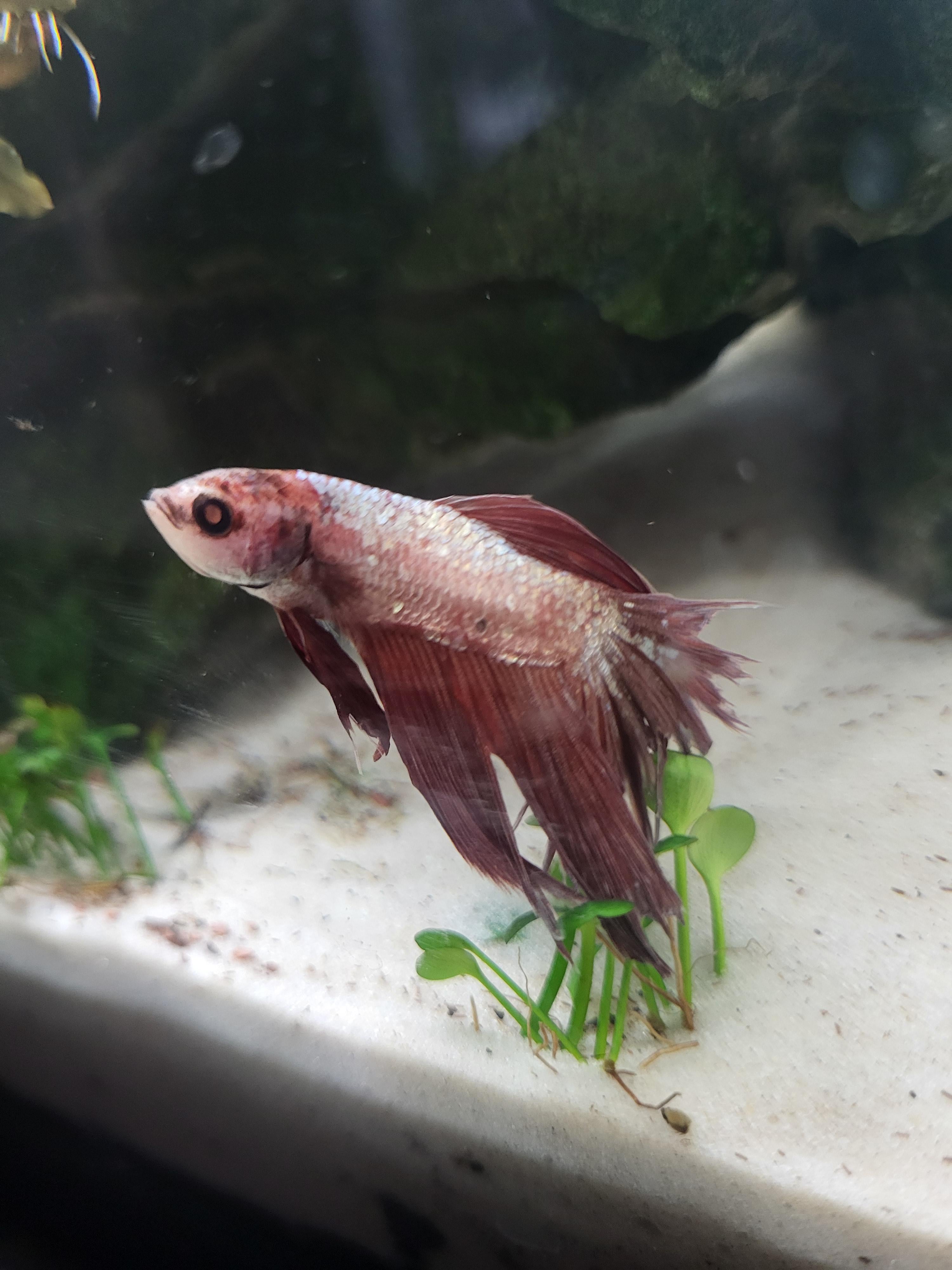 Der kleine geht bald ein. Wahrscheinlich ist es Flossenfäule. Hast du neue Pflanzen gekauft?