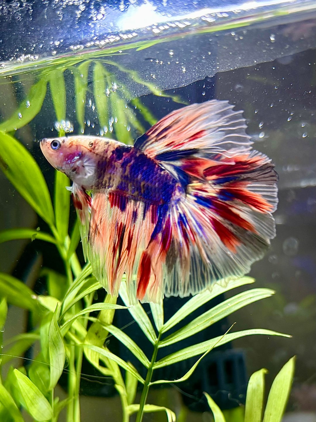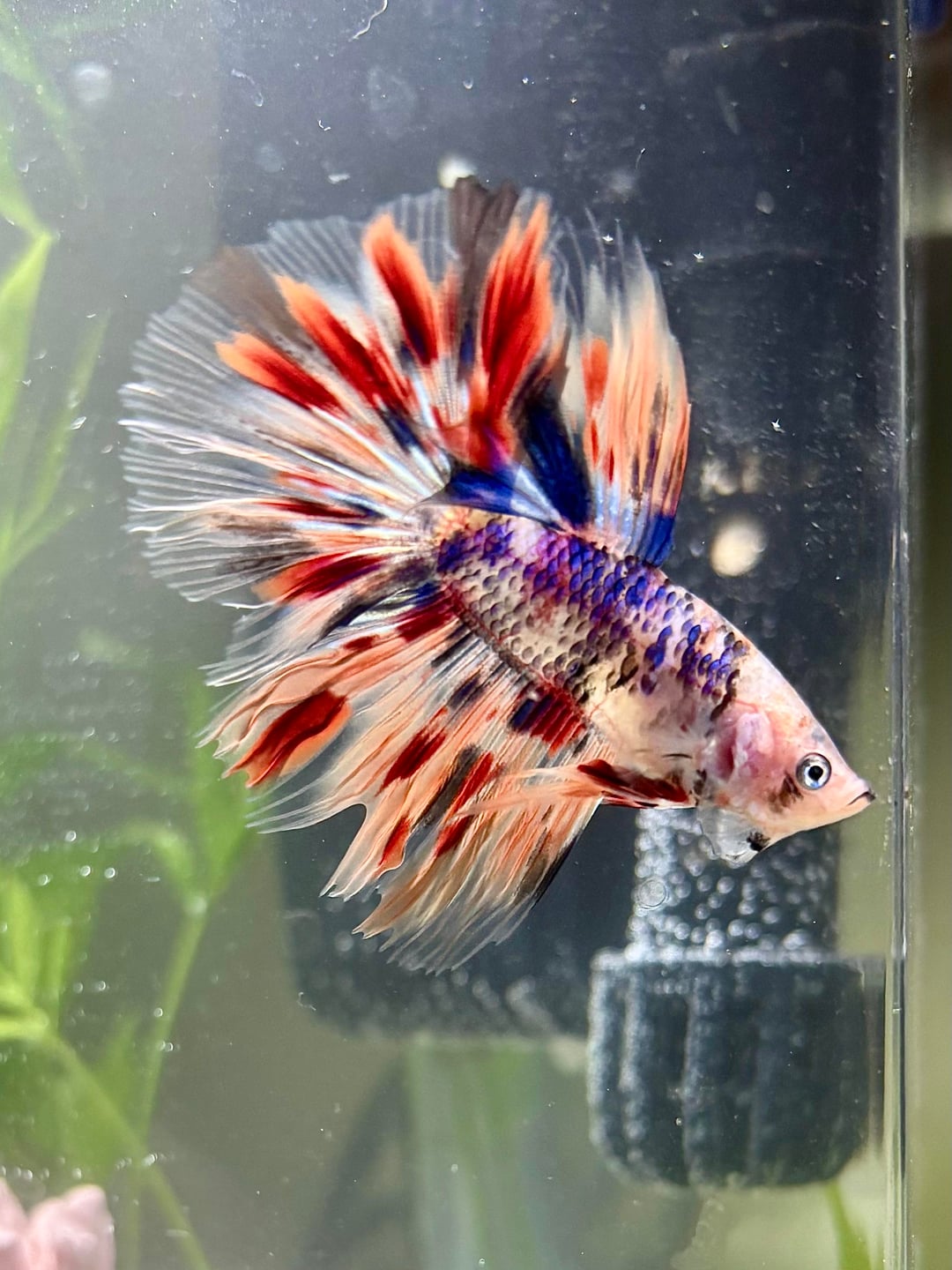 I set up my mom’s betta tank for her and we went out together to adopt this gorgeous koi male who we named Picasso. His colors are already BLOOMING and I wanted to share what a talented little painter we have 🙂