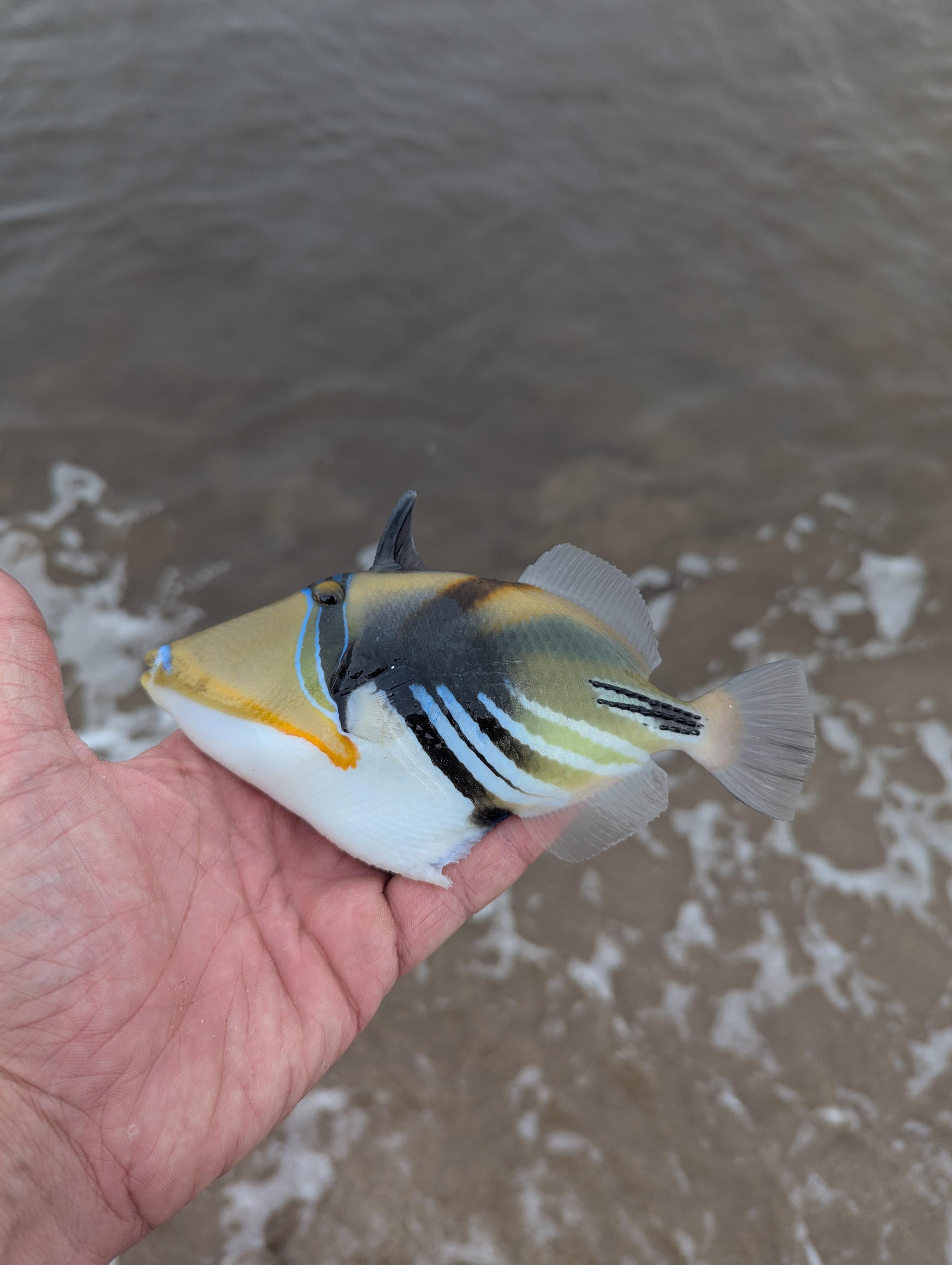 Blessed with a vacation, I copied the locals surf casting on the beach. 3 way rig with a 3 oz pyramid and a chunk of squid. I think I’ll start using squid chunks for freshwater bait, it really holds up well to hard casting.