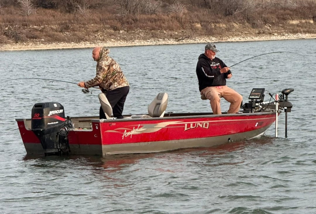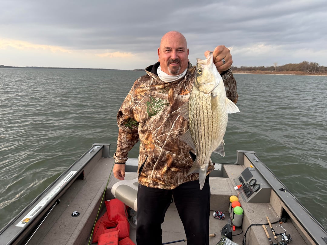 My buddy Donny and I caught some wipers(hybrid striped bass) a couple of weeks ago in Kansas! In the boat pic we are both hooked up! Posted by 12gaugeJoe