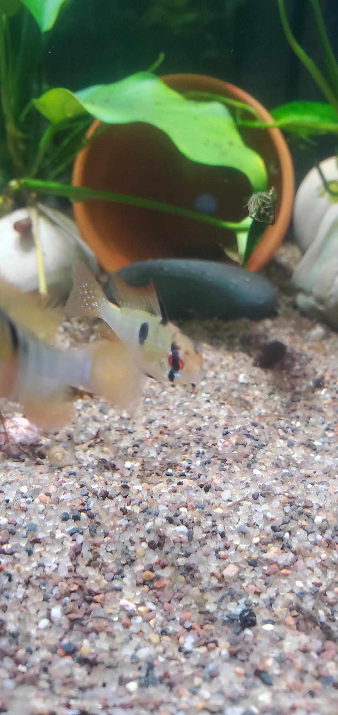 At least one is definitely female, because I've had several spawns from them, and I've watched one and they both made passes over the eggs, and they both watched over them for the first day. However, after the first day they eat the eggs. Are they just bad parents or do they know they're not fertilized?