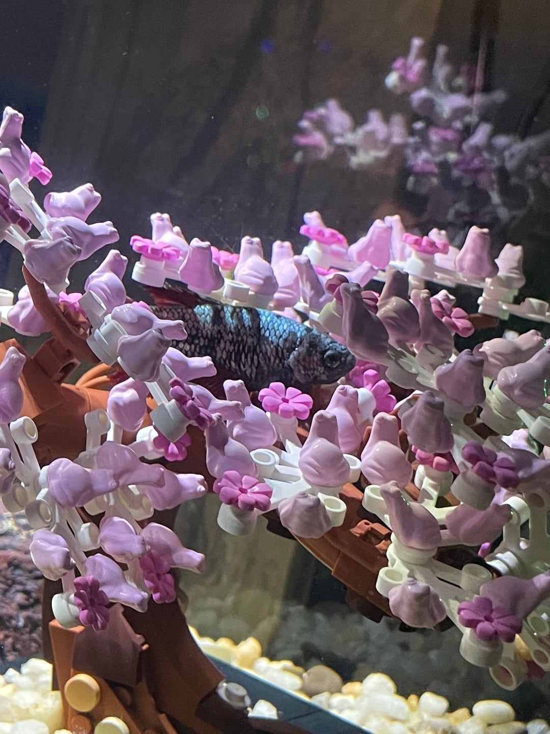 I would remove the Lego tree, it is not aquarium safe