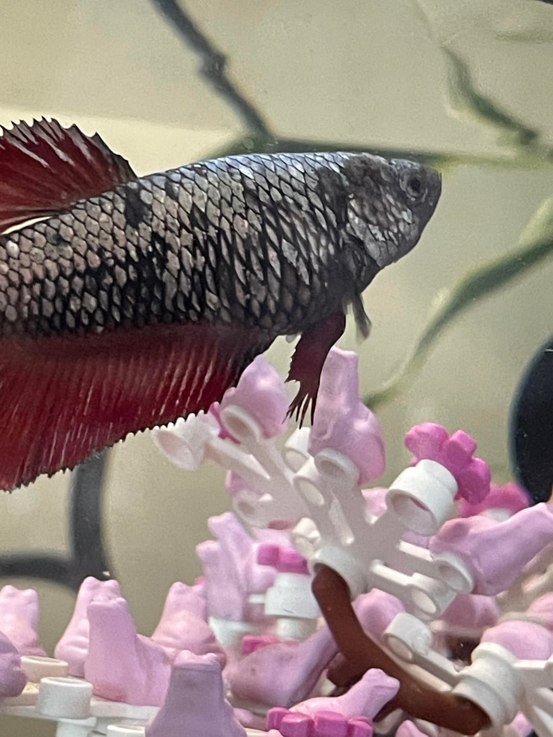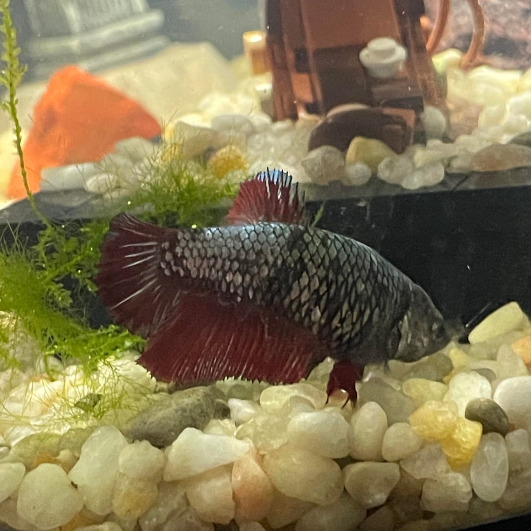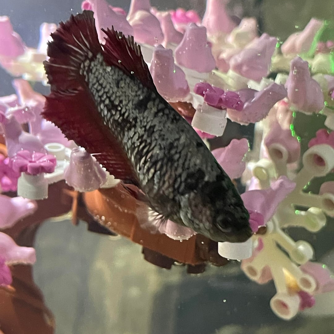 This Percy/perc 40, and she is stupid as hell. I believe she’s a little rotund, but I’ve been getting her weight down since I bought her (Killick Coast Aquarium in Newfoundland. swing by if you live here for some reason). Have had her for about a month and some change. The employee also said she was a male, but she has an eggspot so idk about that. She’s pretty active, and has gotten pretty comfortable with her stupid tank. She loves the lego tree in particular, and loves ignoring her hammock despite it being her cafeteria. I love her to death and hope she has lovely life in her water-prison. Thanks for meeting and greeting!