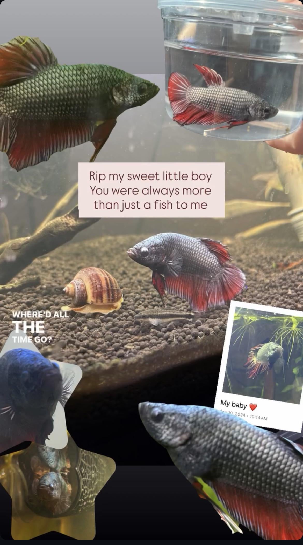 No one talks about how big of an impact such a small creature can make. You were always more than just a fish to me. I hope you will get all of the brine shrimp you want in fishie heaven. Life will never be the same without you.