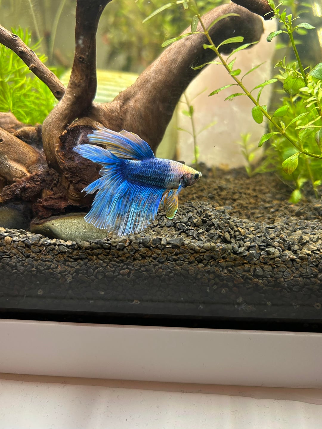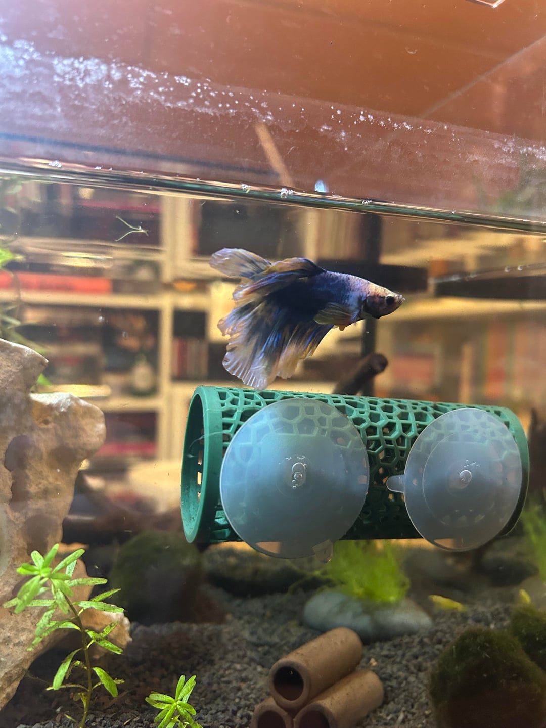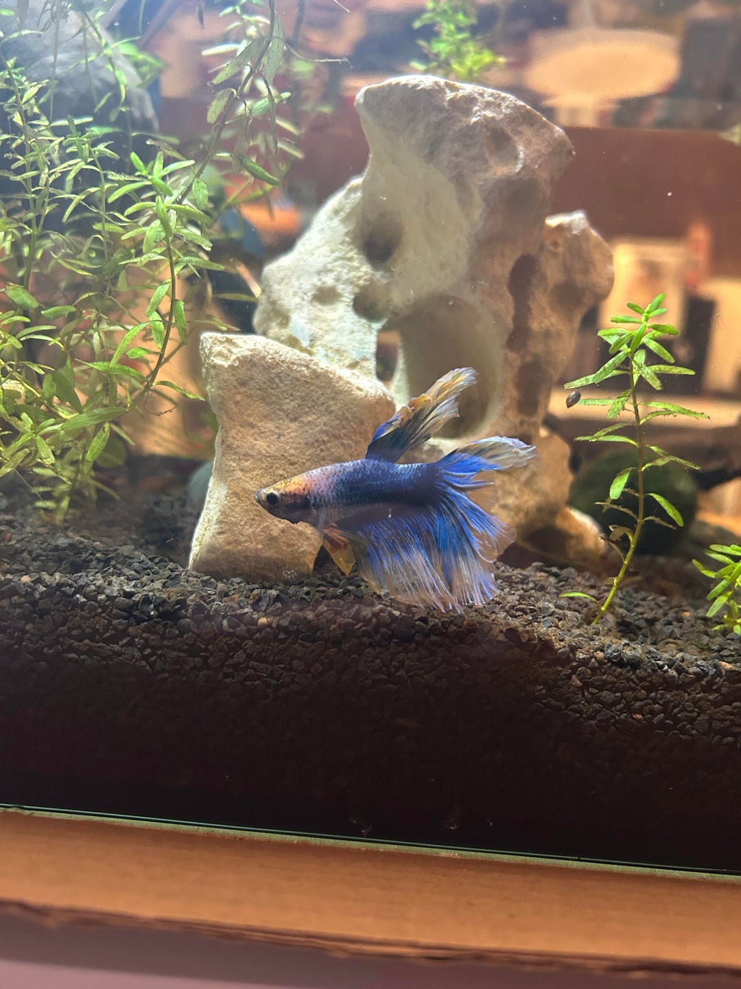so i got my betta fish Ares 2 weeks ago and he’s been under a lot of stress. My tank broke the day i got him after shops were closed so he stayed in a smaller vase until i was able to buy a new the next day and i rehomed him in a slightly smaller tank then the original one.