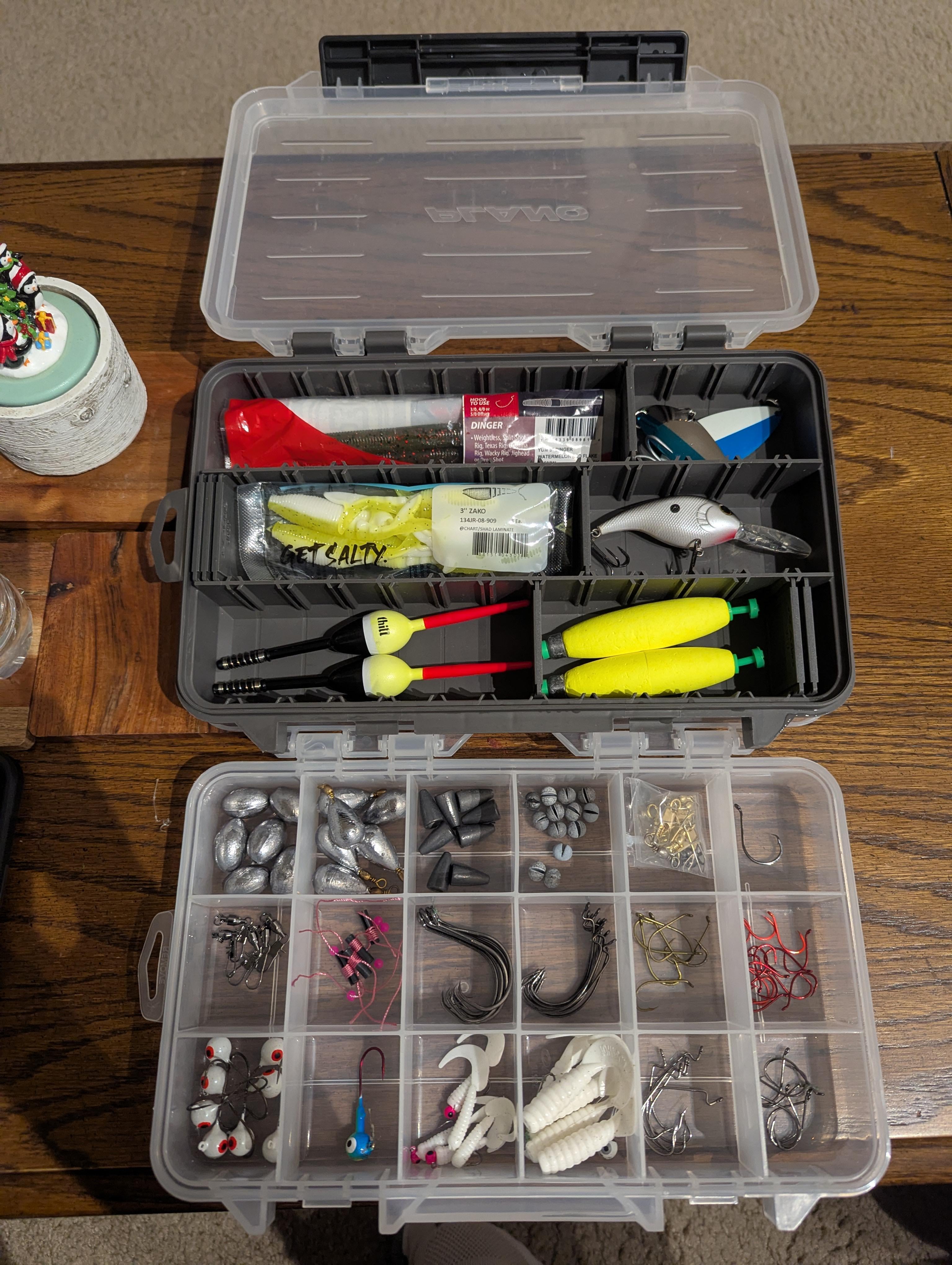I primarily plan on just using bait (shrimp for saltwater, worms for freshwater etc.) but I do have a few soft plastics though just in case I run out/don't have access to any.