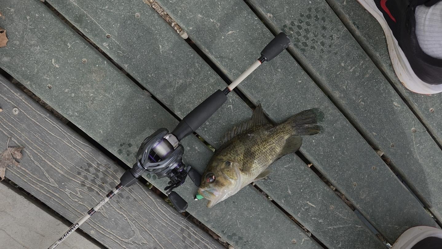 I caught it on a 1/4 oz beetle spin and once hooked didnt even react so It felt like I was reeling up a rock. (I fish at a cold water spring and there's a little ledge right above it so I see thr fish take my bait) (rod is 6ft and I use a dmk cheetah air bfs dc reel)