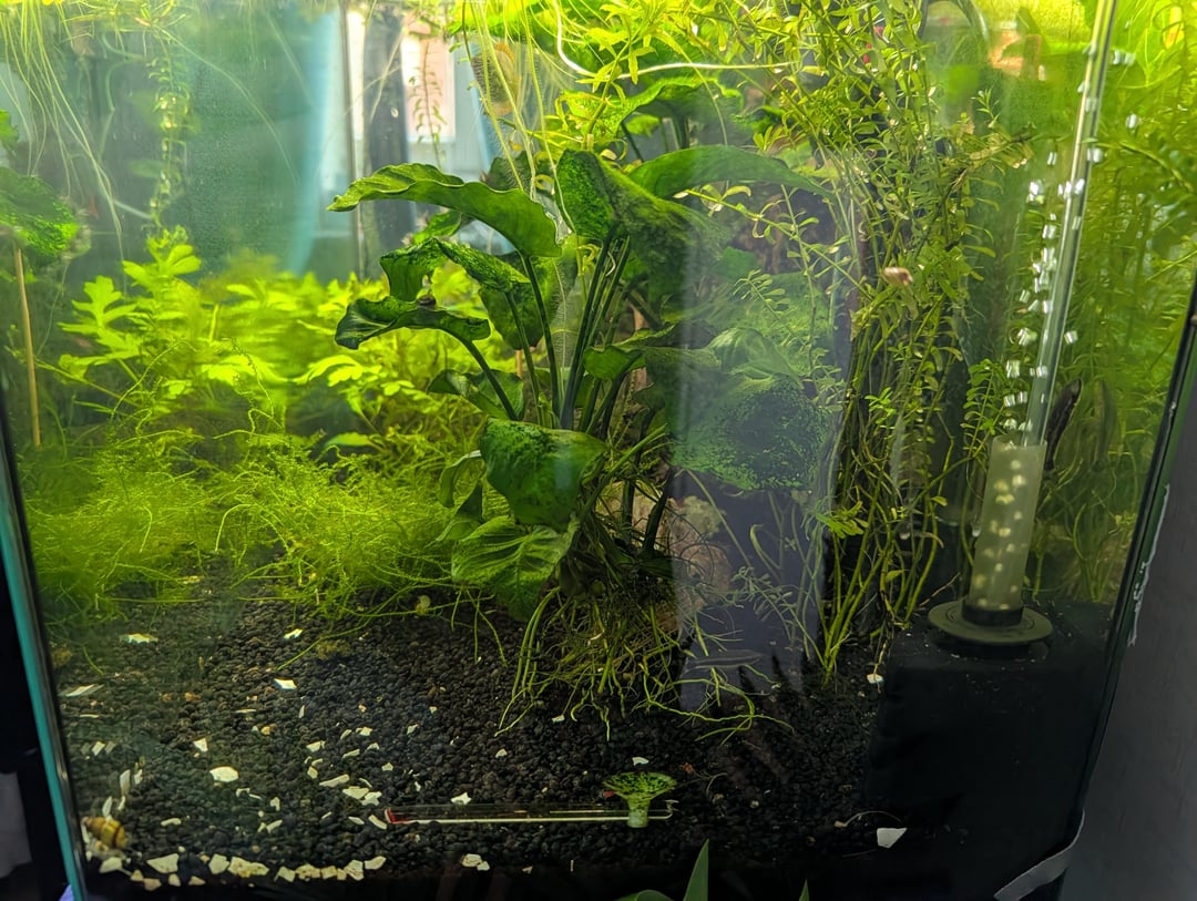 Dont know what to do with the anubias. Should i keep them? Like 90% coverd in algies but the shrimps love it… Posted by Wear-Simple
