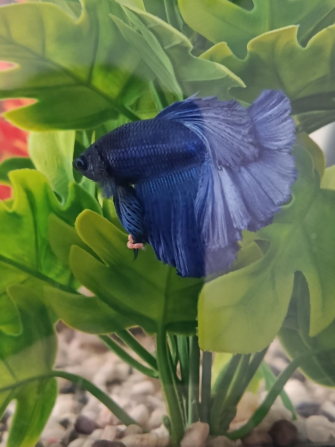 1. My size is 50liter she Has a filter and a heater at 26°C temp. Hes only Bern her for a week i change his water weekly and i takie out 30% i also use crystal water grom tetra and i feed him betta fish grom tropical with Kroll and bloodworm about 15 pebbels (sorry for bad english im grom Poland)