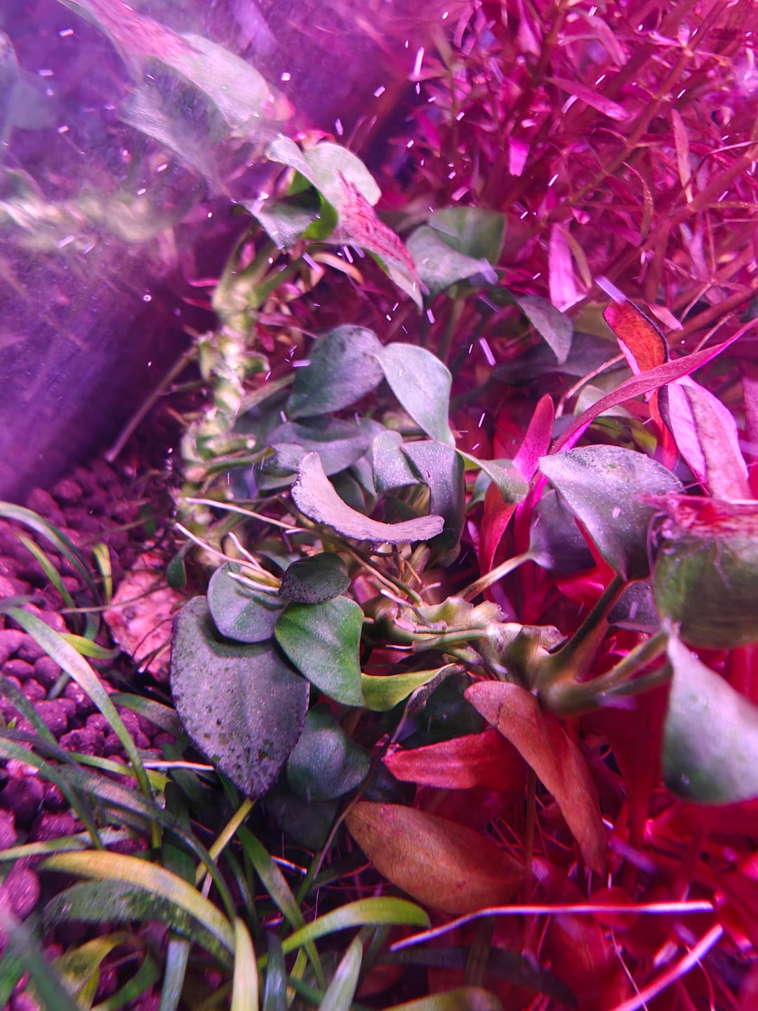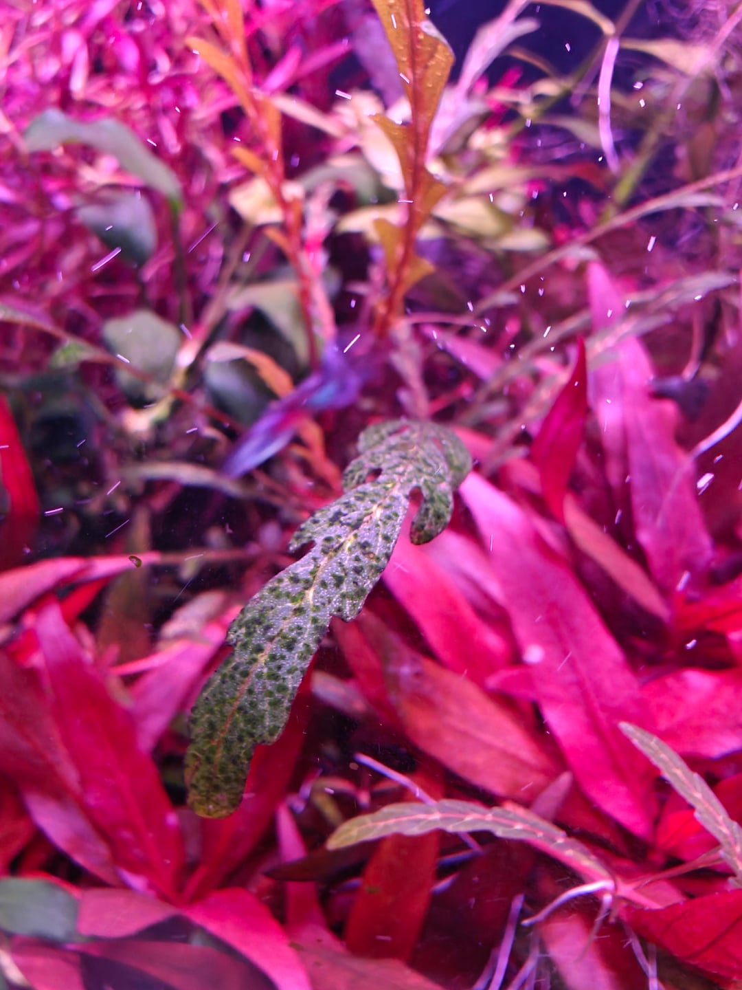 Green spot algea on your plants is not enough phosphates relative to nitrates, along with too much light or not enough co2. If you’ve recently adjusted either then scrub it off and see if it comes back, repeat until balanced. And make sure you keep up with maintenance.