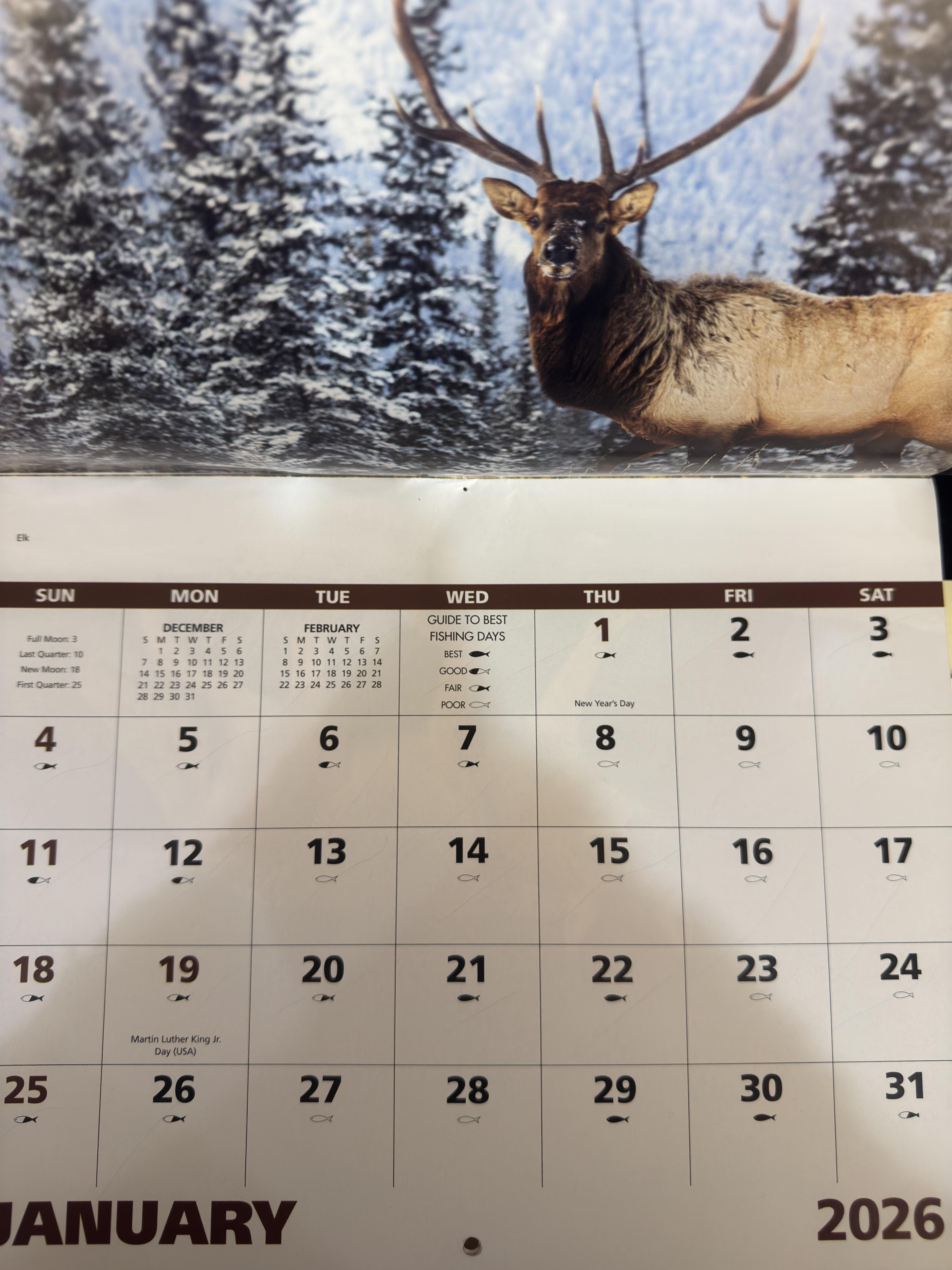 I just received my calendar for next year and noticed it has a fishing guide for each day. What is this based on? Moon cycle or something similar? Thanks in advance!