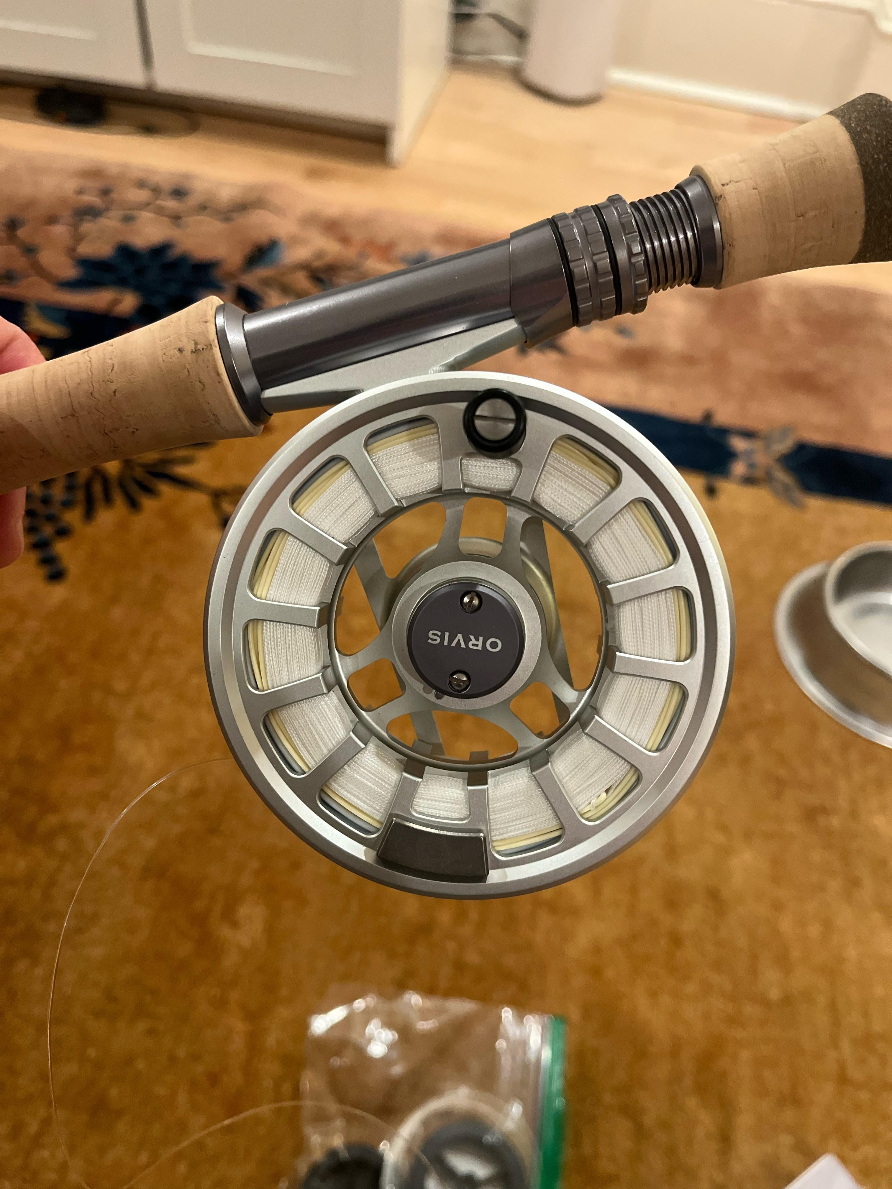 Hydros IV by Orvis. Manual recommends 175 yards. Fly line is also on reel. Thanks