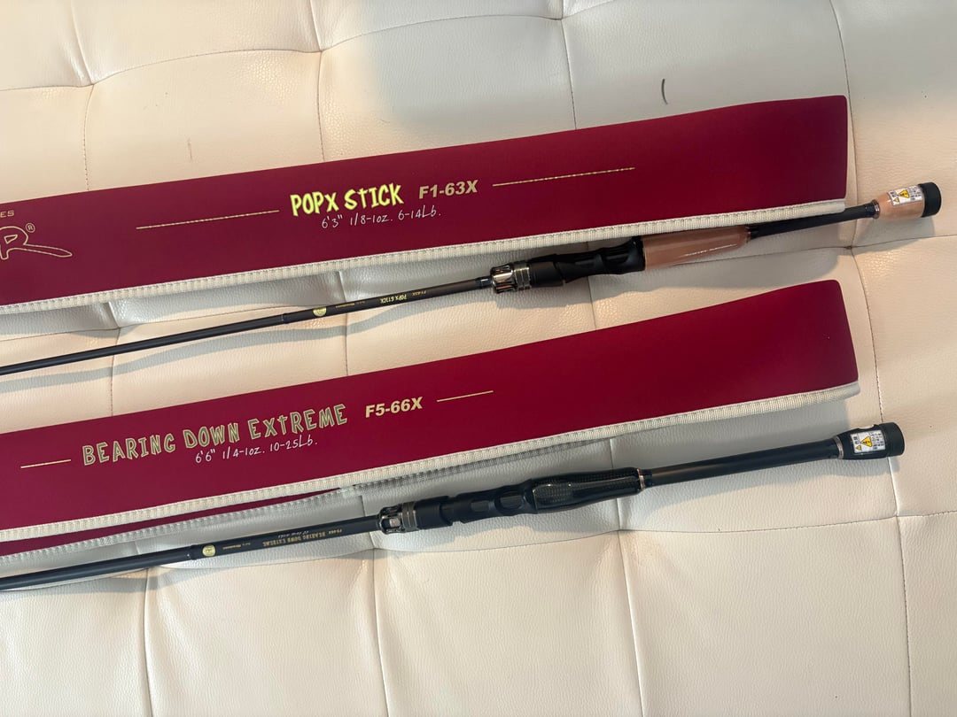 First time ordering two rods at once and almost shit myself when fedex only dropped one rod tube off lolol. Decided to take advantage of the hook ups 20 percent off gift card sale and have been wanting a beefier version of my gravel code and the bearing down extreme does a great job of filling that role! Will be my bigger soft plastic, spinner bait, bottom contact rod. Going to be my 1-2 punch along with the medium/moderate 6’8 poison adrena for basically everything i throw thats not BFS. Pop-x because why not? Lol. Gonna run a zillion on the bearing down and either an ss air or alphas bf tw on the pop-x. Now im considering trading the poison adrena in for another destroyer, not because it’s not a great rod because it is…..but these destroyers really are something special. Happy new years everybody!