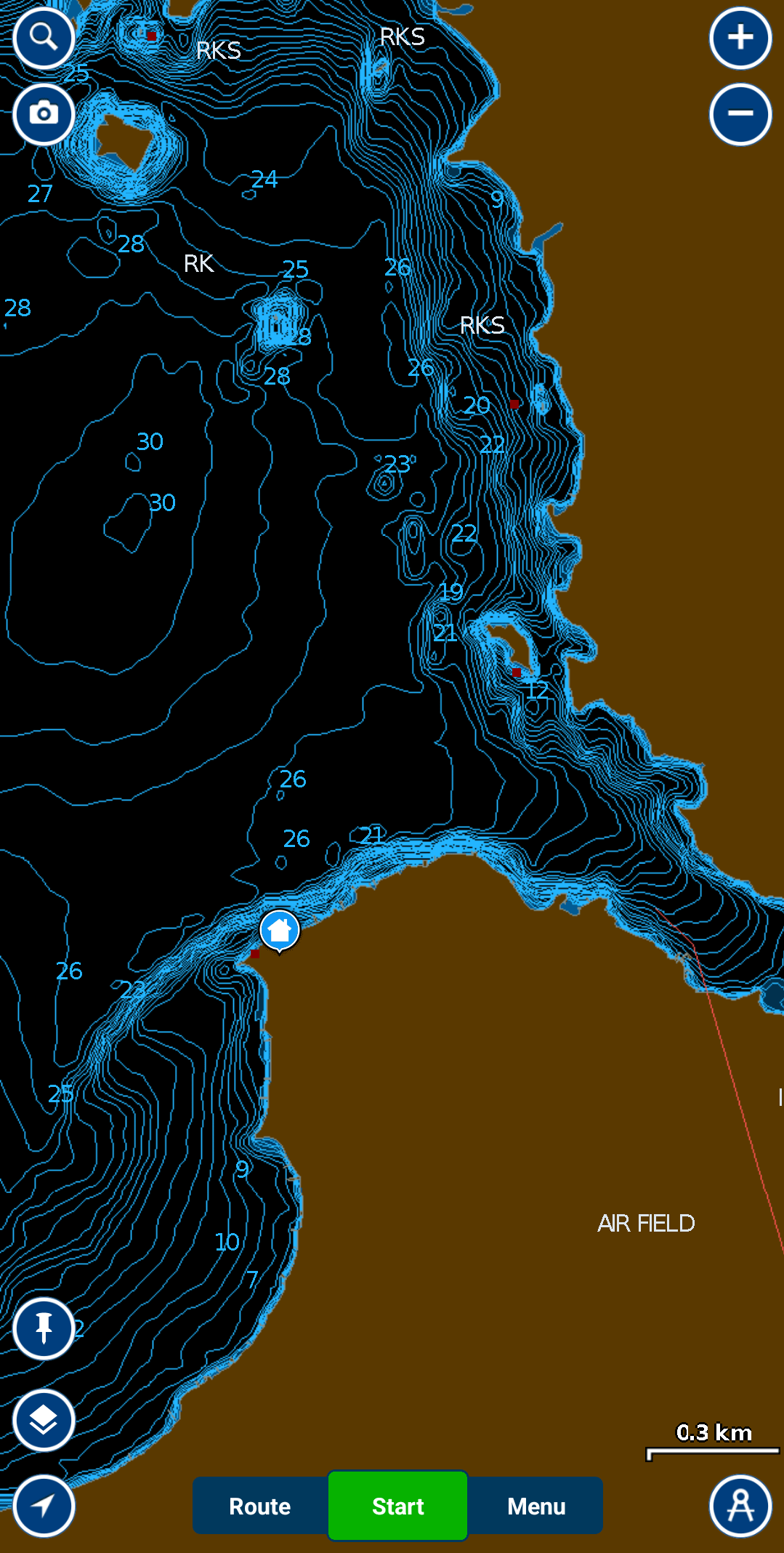 Home icon is the launch, anyone have suggestions? My gut says south the island on the east shore where it transitions from 21 to 12' of water on that transition but looking to learn.