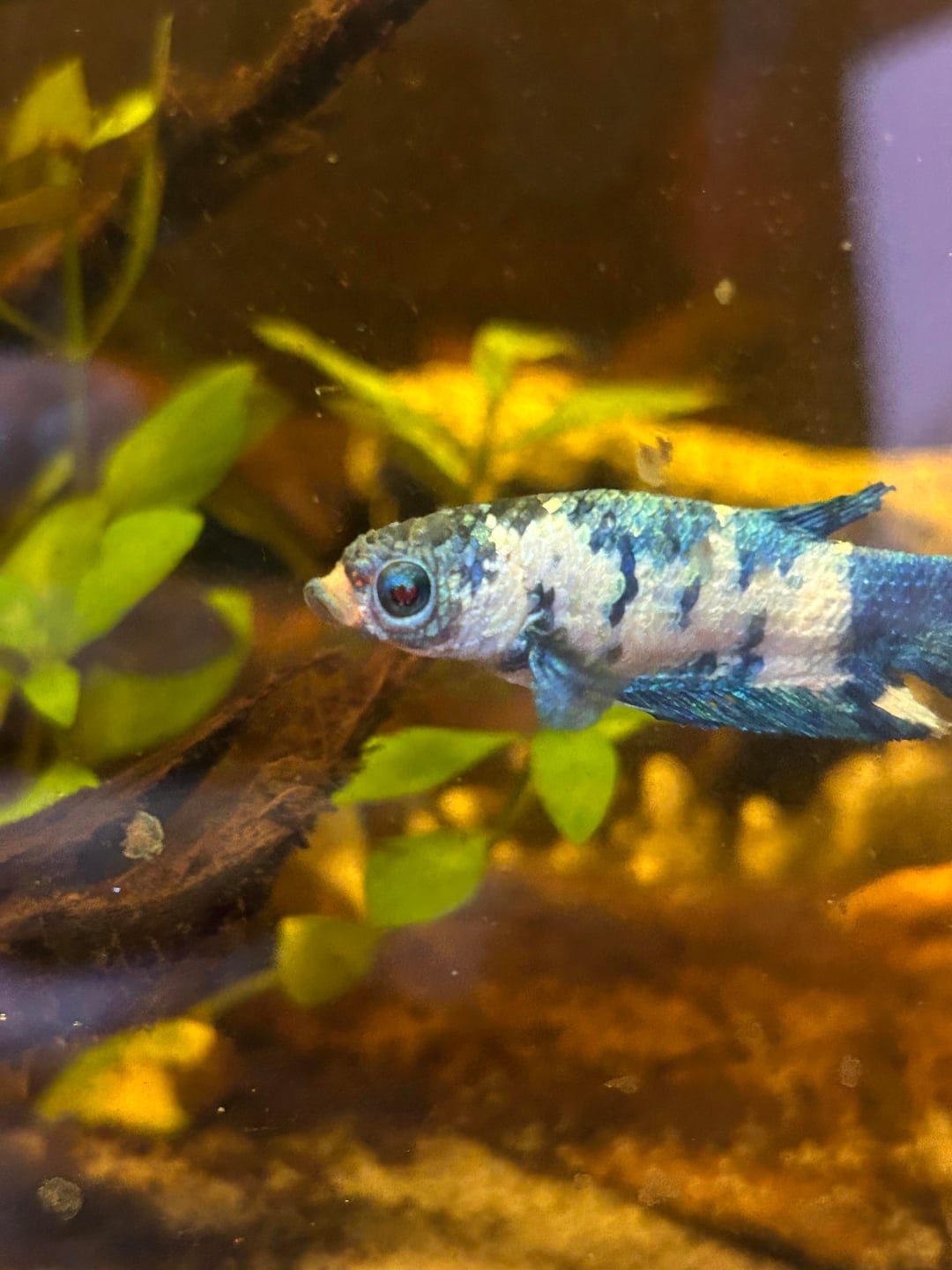 I woke up this morning to find her like this and I have no idea what in the hell is happening. She don’t appear to be pine coning and is swimming like normal. Today’s a fasting day so I’ve not tried to see if she’ll eat yet 🫠