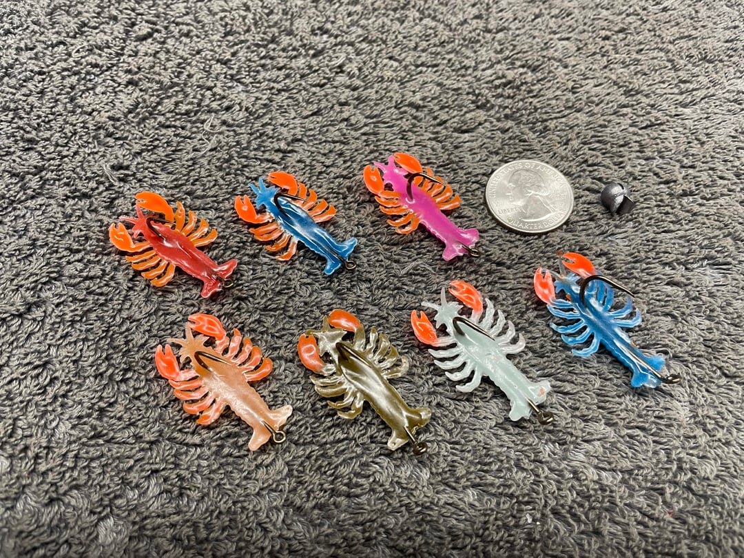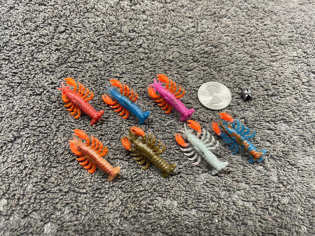 Remember the Creepy Crawlers toy? I’ve had this since I was a kid. I’ve tried several molds, but this one is by far the most successful. This tiny little lobster/crawfish mold with a hook baked in it is killer in Kentucky farm ponds. Split-shot about 6” above on 4lb test and fish like a worm. It is so effective.