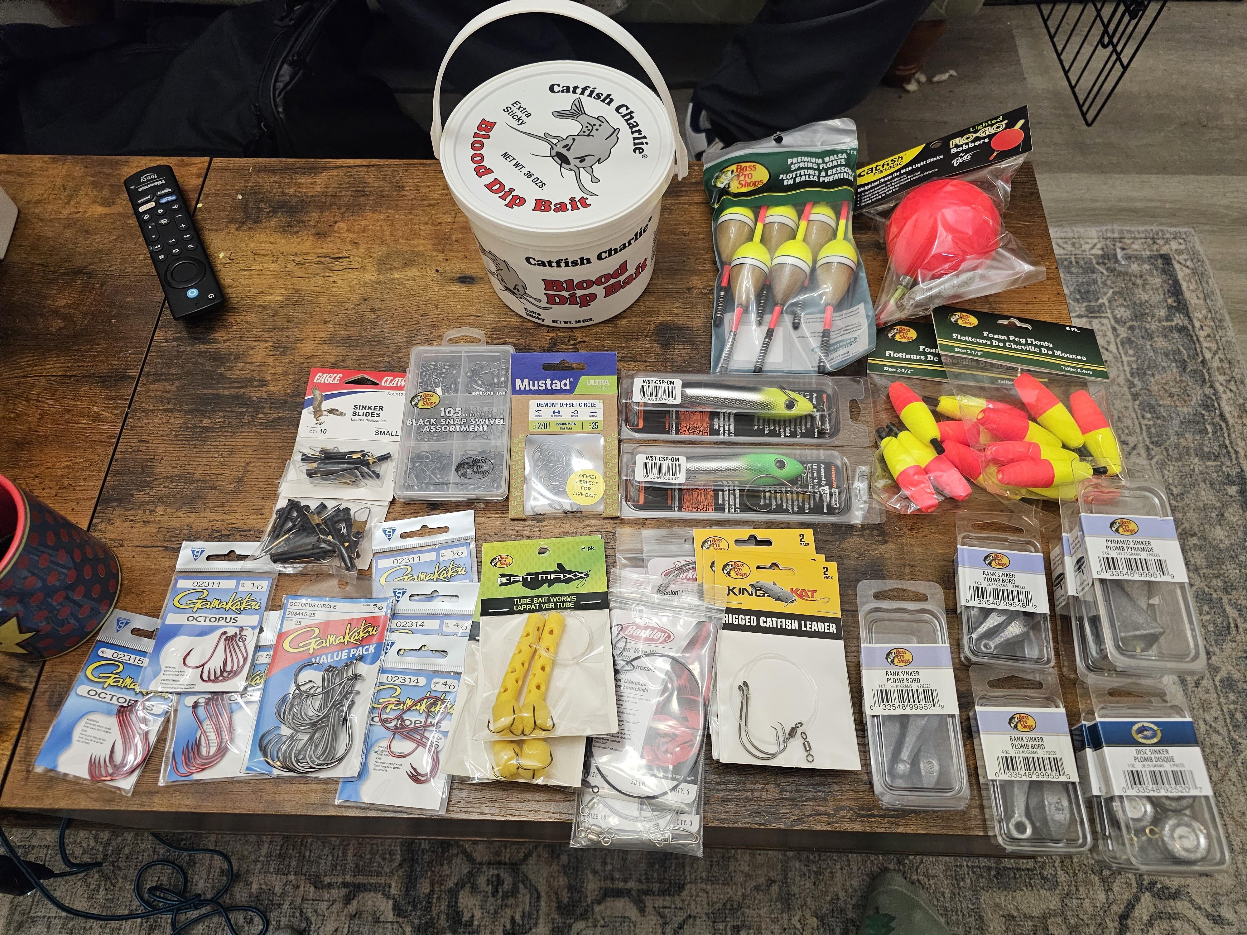 I was looking to set up the ultimate catfish tackle for eater size up to 30 lbs. What am I missing? Spent 200 at bass pro still have about 250 left in gift cards so I can still add to this.