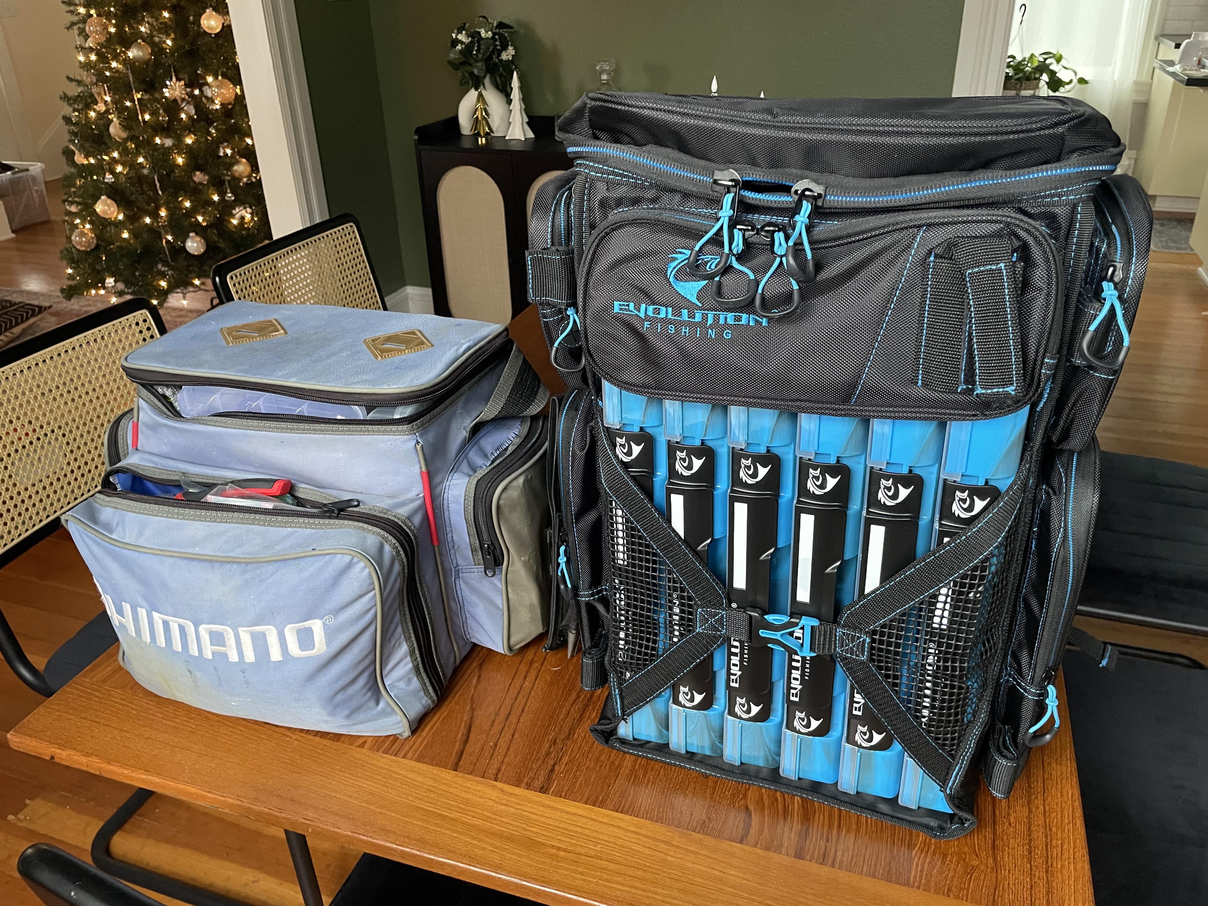 I had (still have) that Evolution Outdoor bag. I downsized last year to a KastKing Baitspace. Still pretty heavy for long walks but that Evolution kicked my ass after a mile or so. I can’t resist filling a bag to the brim