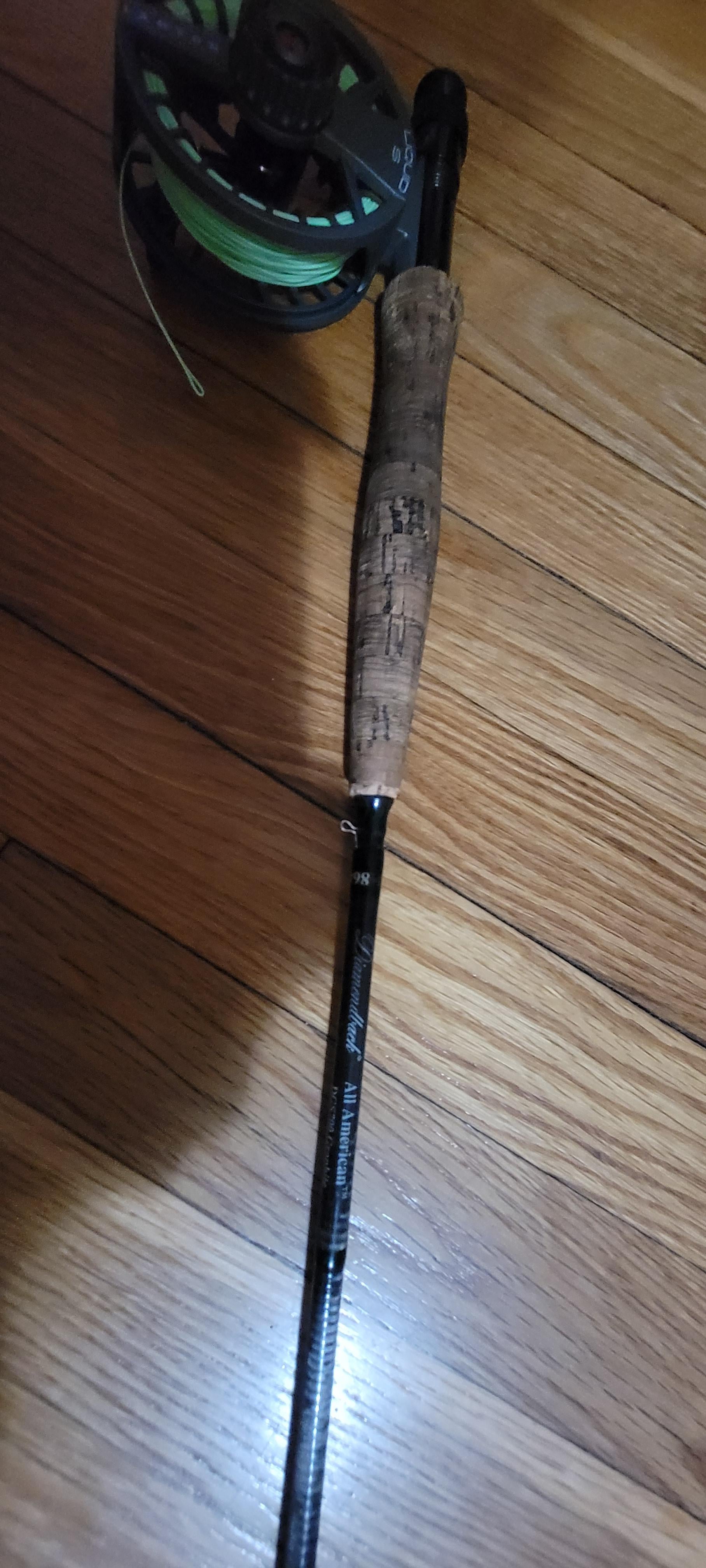 Treated myself to a new reel. I bought this rod back in 02ish and replaced the Redington redfly that I had on it with a liquid s. Rod is a Diamond back All American. (Was made inVt) i was stuck between the Orvis clearwater and the lamson. Chose the lamson