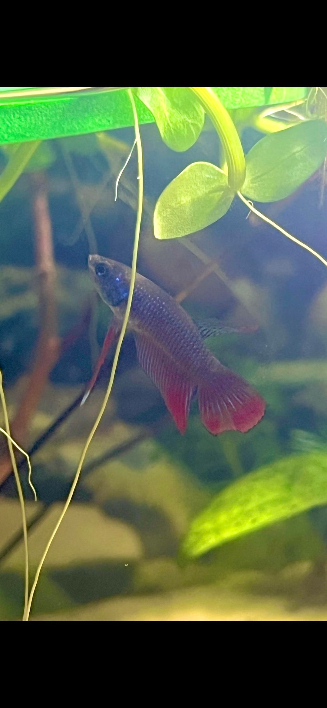 He’s a Betta imbellis, also known as the “peaceful betta,” and it didn’t take long to see why he has that name. Despite everything, he settled in quickly and now spends his days happily swimming alongside his Endler buddies like he’s always belonged there.