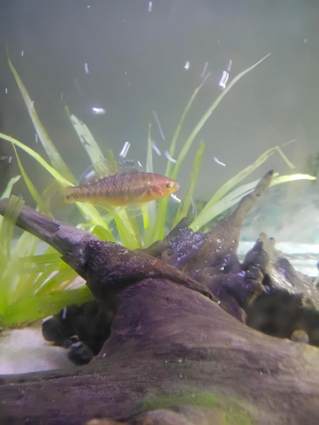 1. Empire gudgeon (*Hypseleotris compressa*). Very pale but you can just about see the white, orange and black on the fins.