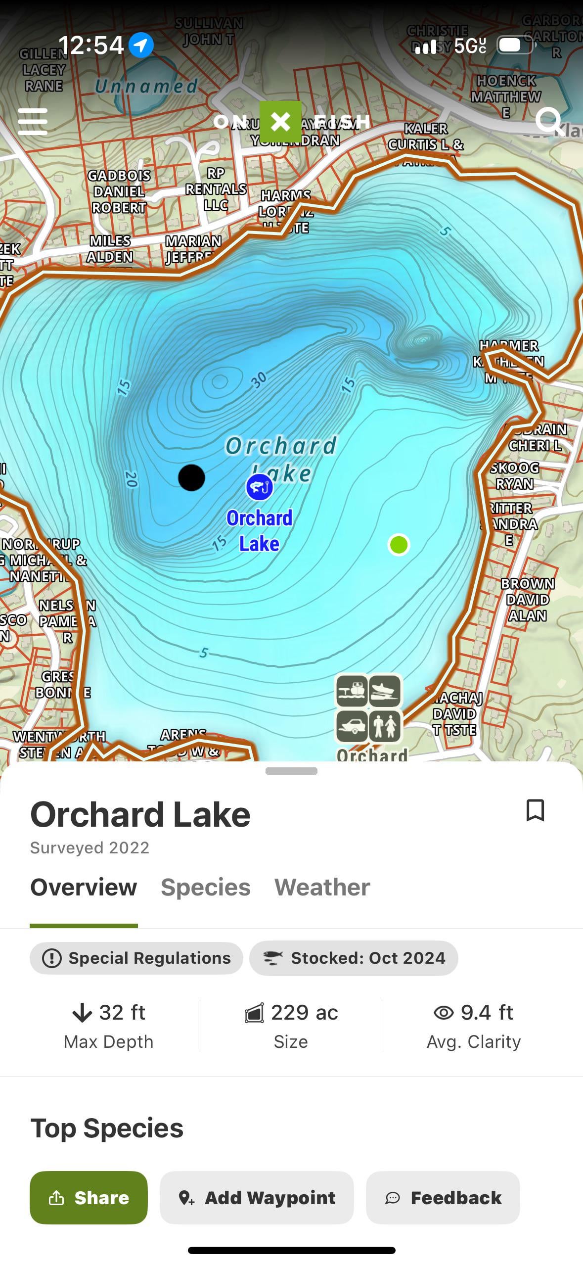 Orchard is pretty weedy along the NE section of the lake. I’d aim for the edge of the weed line between the 13-15ft depths.