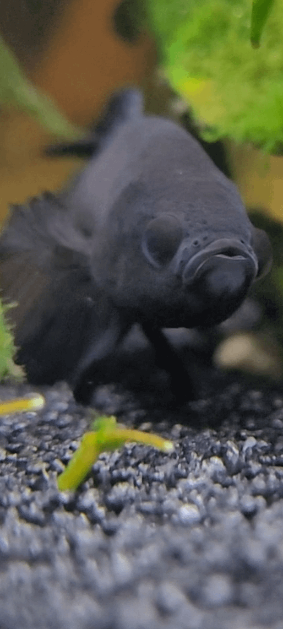 Big Man Obsidian is a sweetheart. He will rest in my hand, be hand fed, is perfectly fine with gently being pushed around/LIGHTLY stroked on the fins, gets booped, and he has had absolutely no desire to flare at anything at all for the past 6 months! He’ll be 4 years old this summer <3 (Old pic)