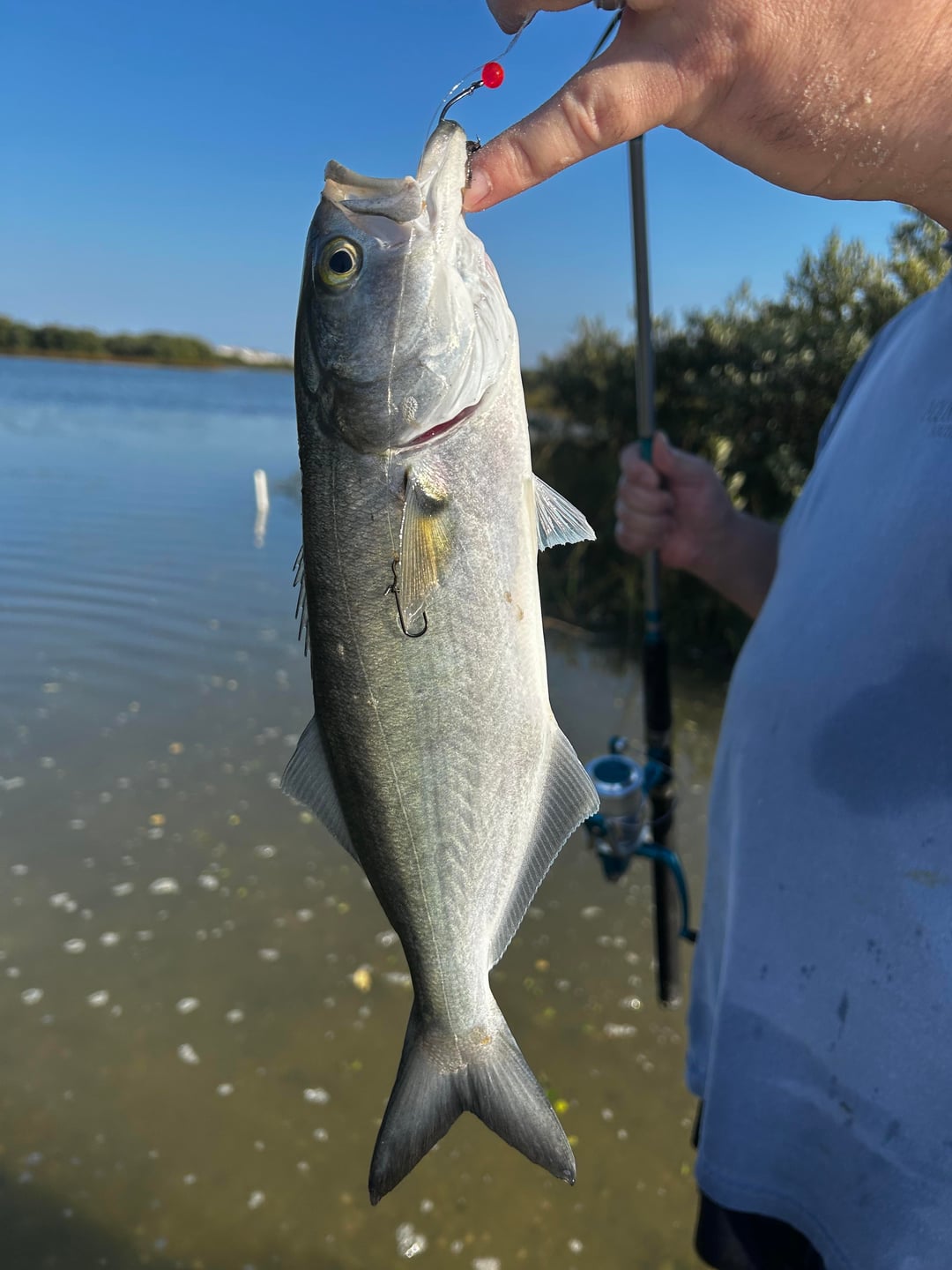 Besides if you don’t know some of these fish will get you the bluefish has crazy teeth that bite right through prey. Your finger doesn’t stand a chance!