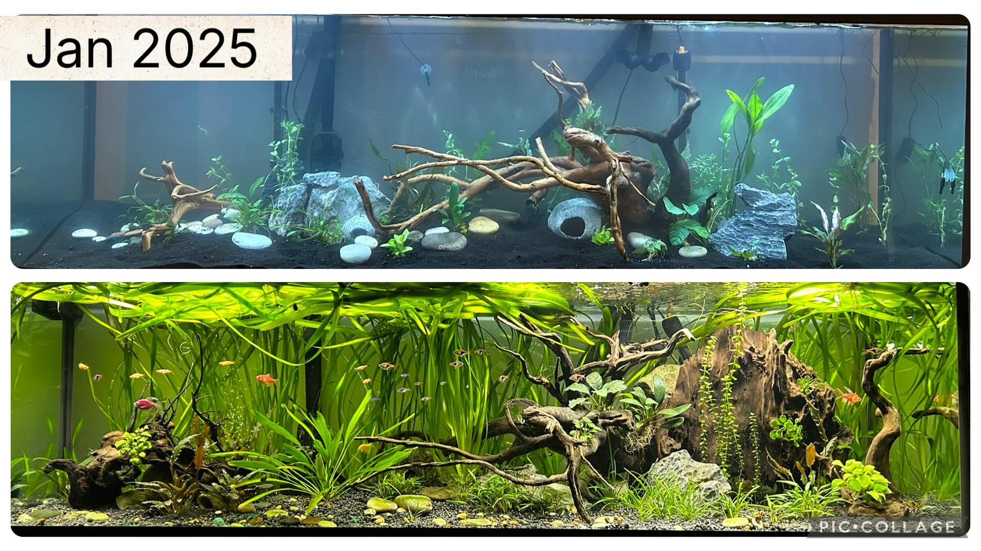 Here is one year’s worth of progress. 😊 I can’t decide whether or not to trim the vals. Some are over 6 feet long! But the fishies love the cover.