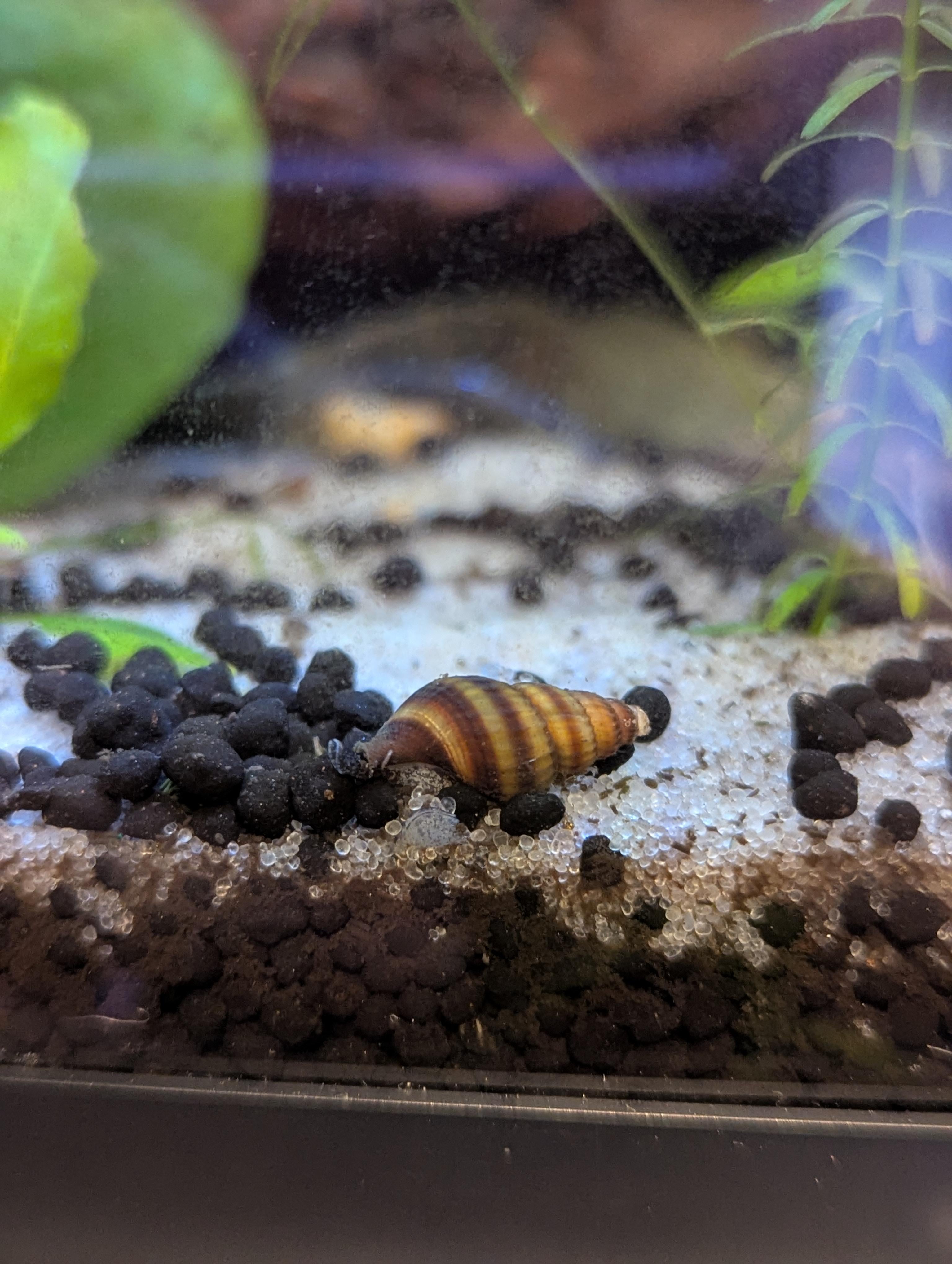 Zero new additions to this tank in months but I've never bought an assassin snail. Can only assume it hitchhiked on a plant as a baby and I only noticed it now.