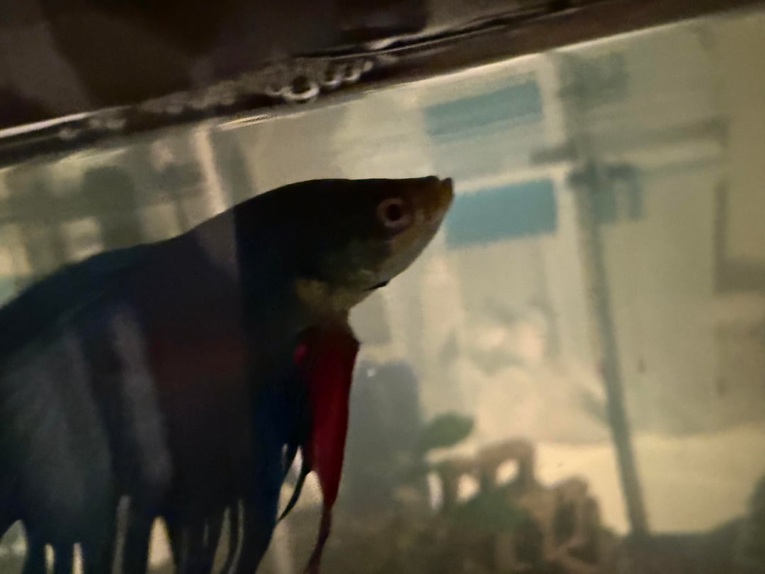 He had to take a long trip cause I just moved and I think it stressed him out a lot. He’s been eating and swimming fine but he just looks not well to me. Idk what he has though. I can’t seem to pinpoint it if he is sick at all. I barely caught it but at night he was laying on the gravel in that photo for a long time. I don’t know if that’s normal resting or that he’s dying. Once I turned on the overhead lights in my room and he saw me he swam. Also putting a video in the comments. He’s my little buddy if anyone has any advice it would be greatly appreciated 🙁