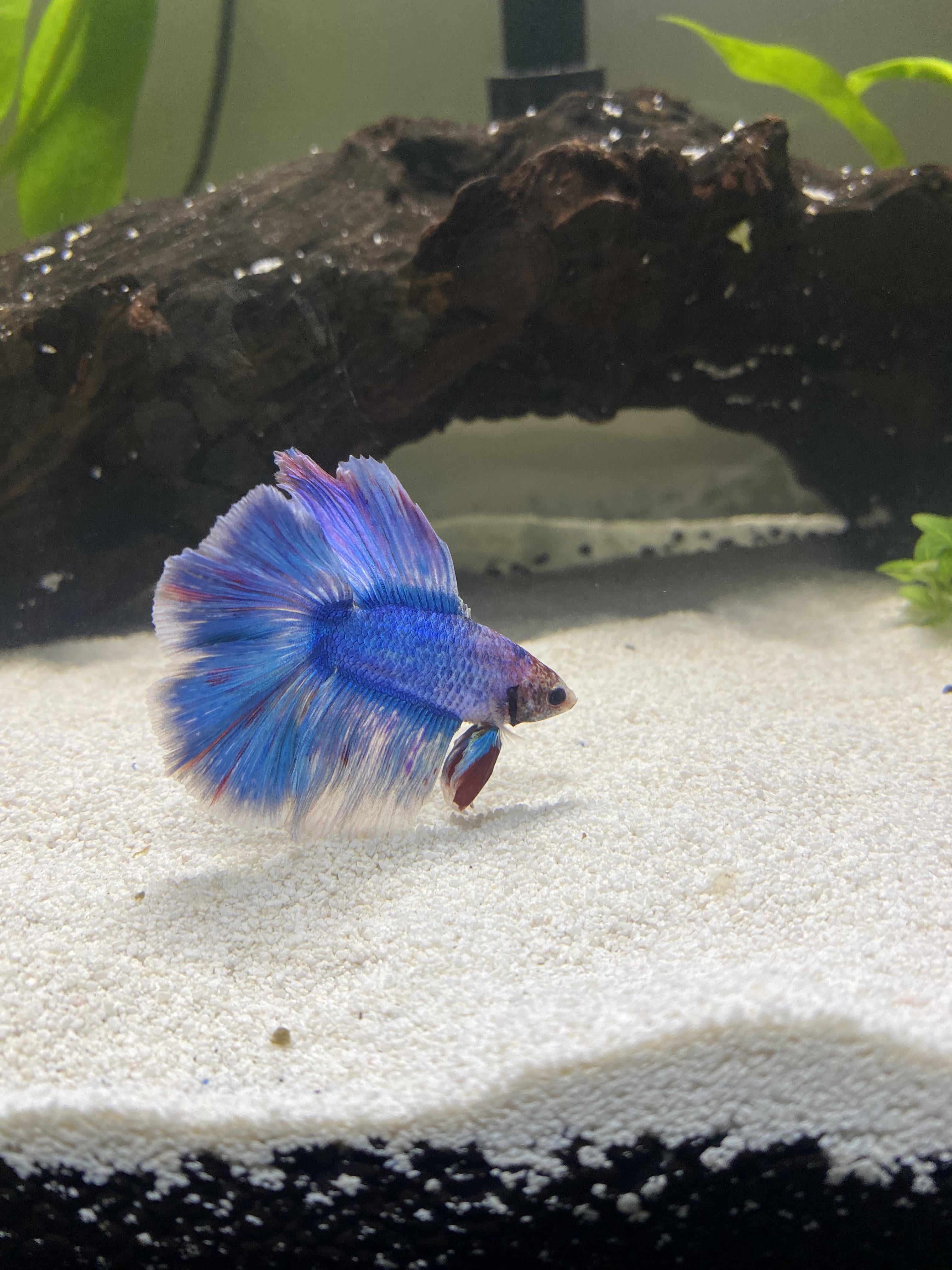 i lost my beautiful boy this morning. this photo was him just a week after bringing him home. this was my first ever betta and tank since i was a kid. i had about 6 months with this guy, he was so full of personality. about 2 weeks ago i got him some tank mates, 6 julii corydoras. (i have a planted 20 gal long) he was doing so well with them, no nipping or anything at all. then i noticed he was bloated when i had not fed him. i observed for a bit and he was taking the corys food. he was taking almost all of it, and due to him eating to much it was hard for me to keep his bloat down. i would fast for a day or two, and then feed a small amount to both fish. the cycle repeats. he kept going back to being bloated and last night he didn't make it. i did all i knew to do and tried my best. may he swim in peace.🫧💙 (i will be returning the corys to the store i bought them from. i would like for someone to better care for them and that way i am able to get another betta without running into an issue like this again.)