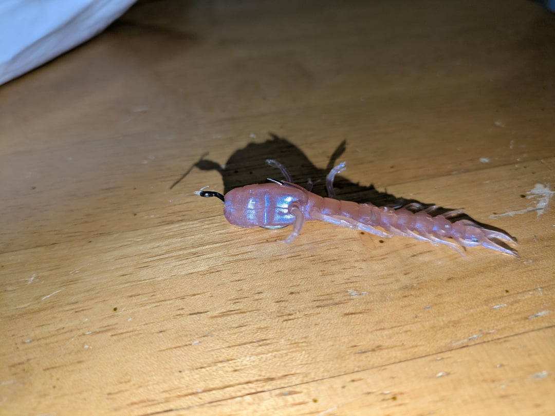 You may want that on an appropriately sized jig head. With the hook pointing out.