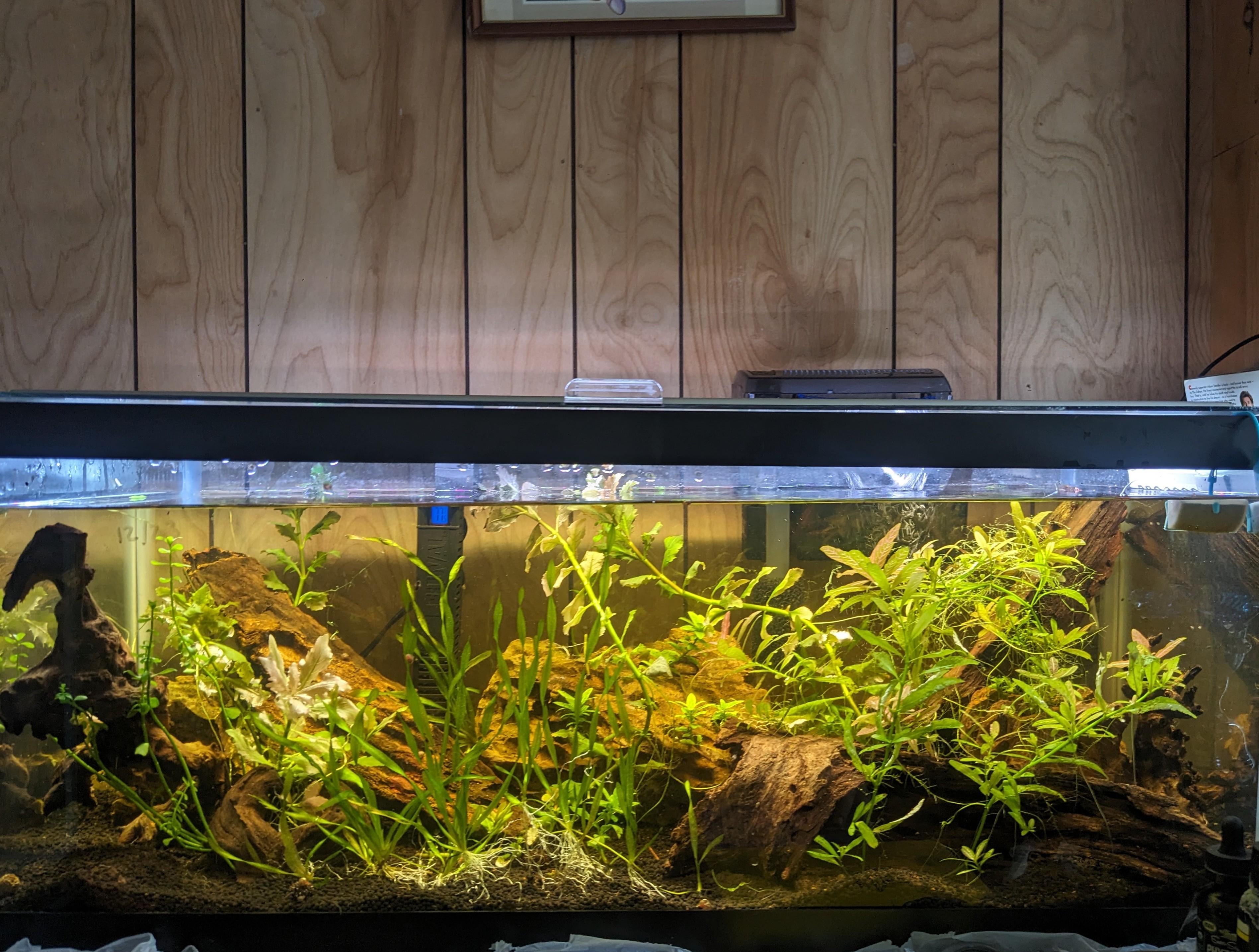 I want a few floating plants and a dish to slow the flow of my filter a little more, but otherwise, it's cycled and ready for the fish! Unfortunately it's nasty levels of cold at the moment where I live so I can't even order the plants let alone the fish for a couple more months. In the meantime, I love looking at the tank as it is, and watching the little snails move around