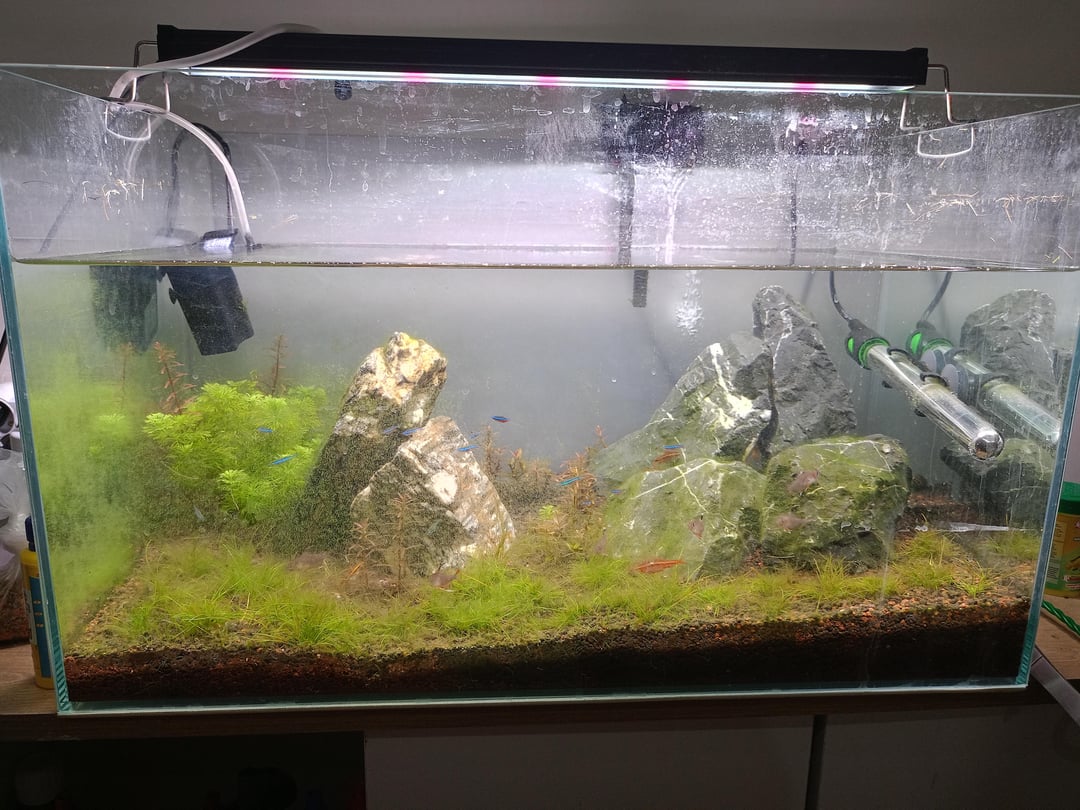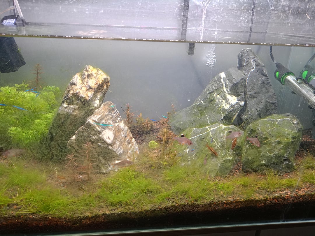 I think my tank is already filled to it's limits. It's about 10 gallons/50 liters. I have 4 cherry barbs, 13 green neon tetras, 6 x-ray tetras, 2 nerites and 1 small veil tailed albino (golden) bristlenose. I don't want to add anything else and mess with it anymore but hair algae problem is only growing.