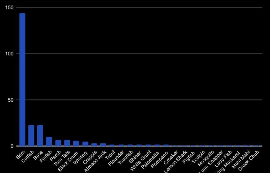 A graph of every fish I caught in 2025, my first year fishing