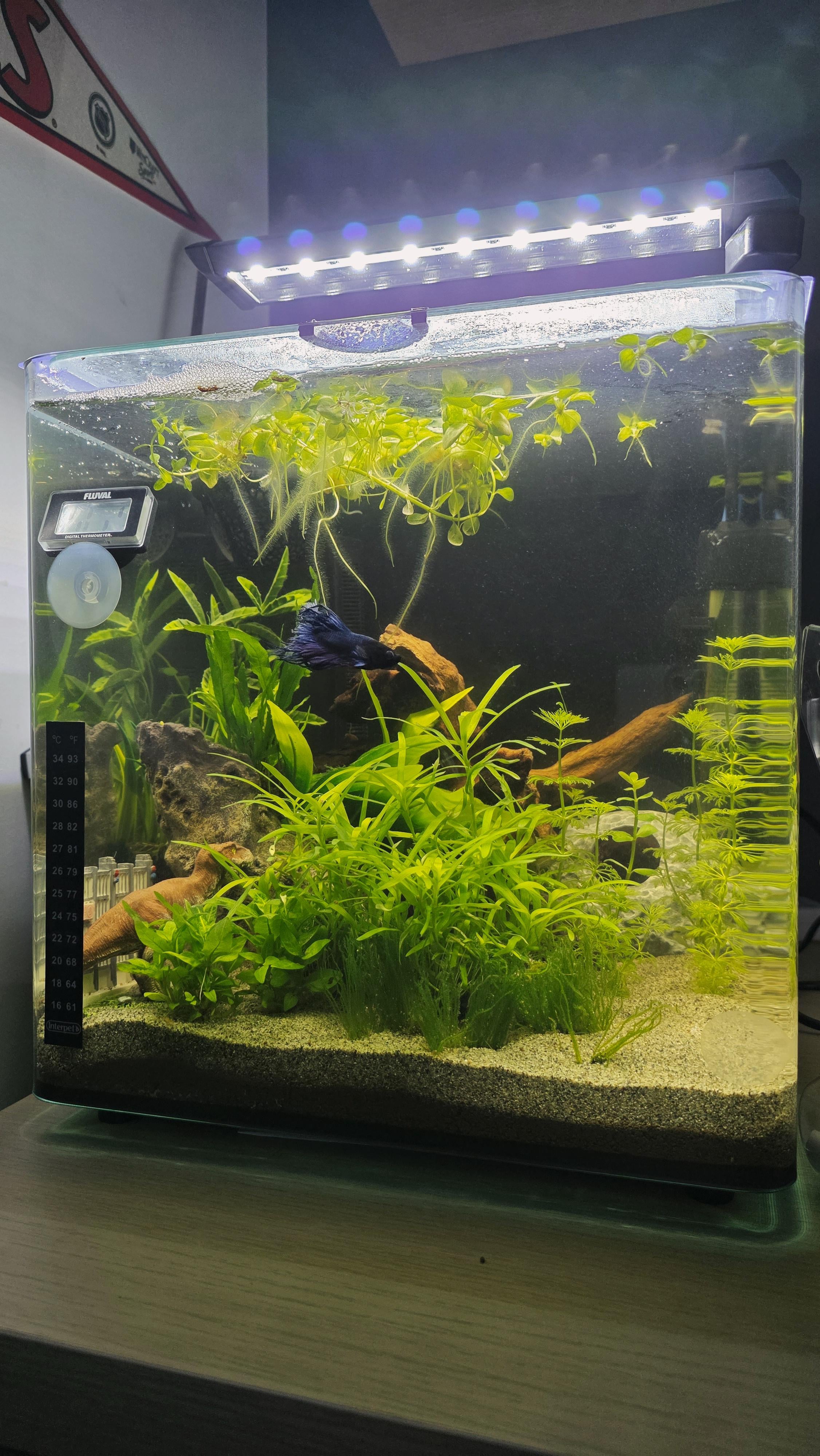 Hey! I've wanted a tank for a while and finally convinced my partner it was a good idea, and since I haven't kept fish before, I got myself a Betta. Meet Apollo!